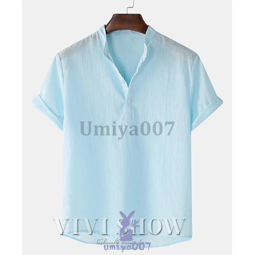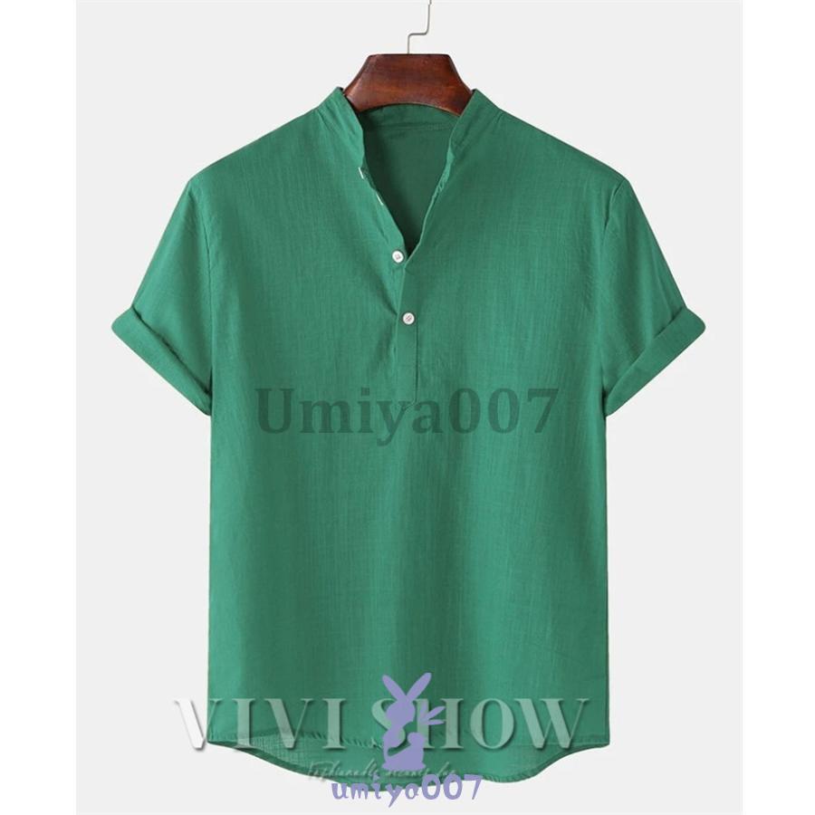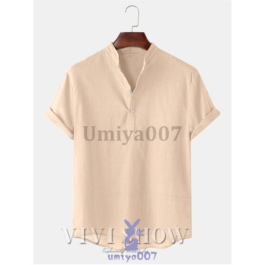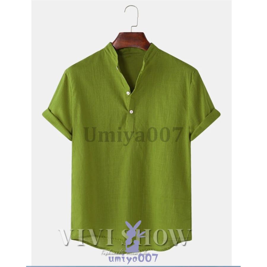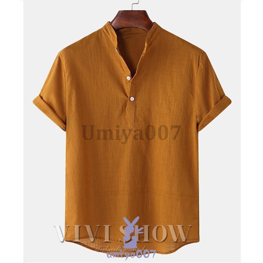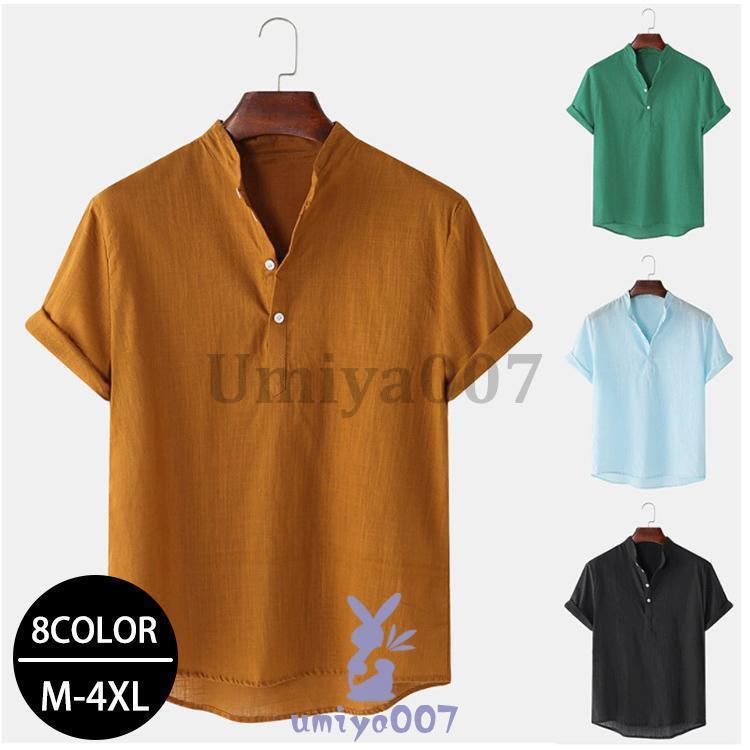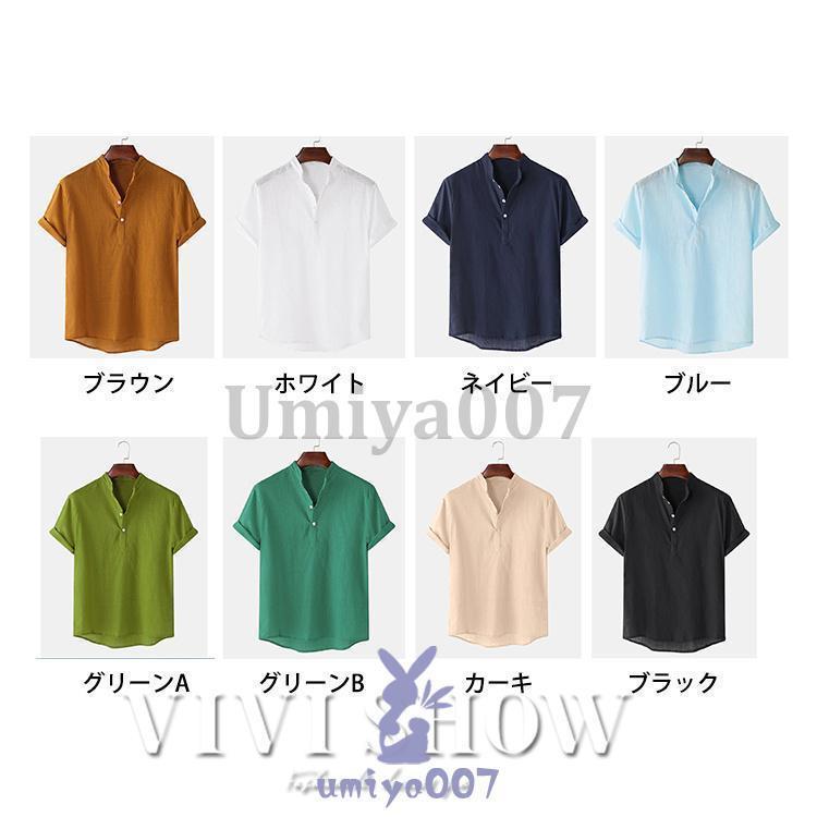 リネンシャツ メンズ 半袖 Tシャツ トップス Tシャツ カットソー 人気 ブラウン ホワイト ネイビー ブルー グリーンA グリーンB カーキ ブラック M L XL 2XL 3XL 4XL