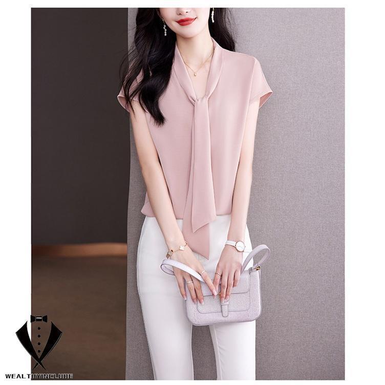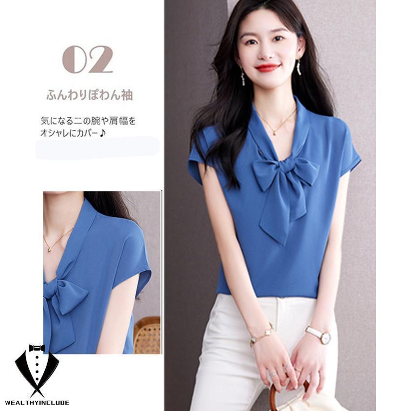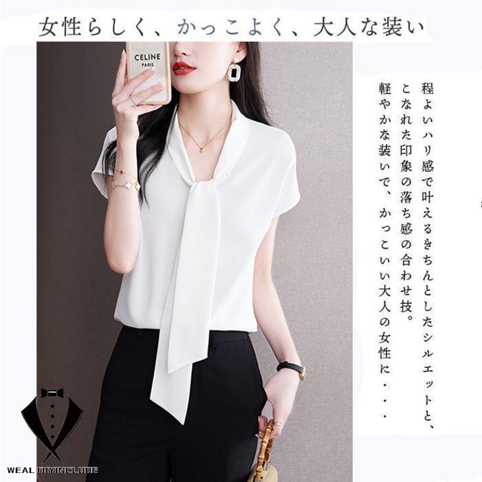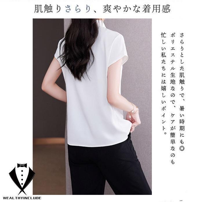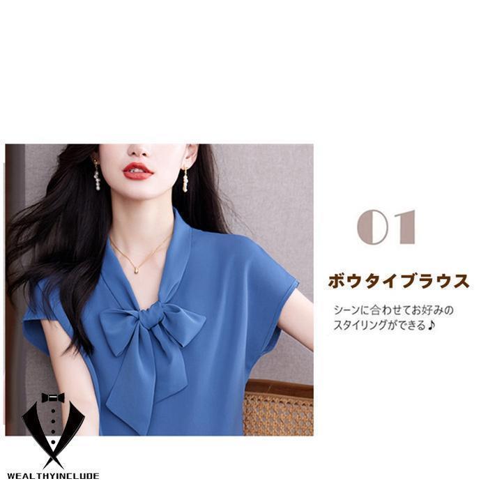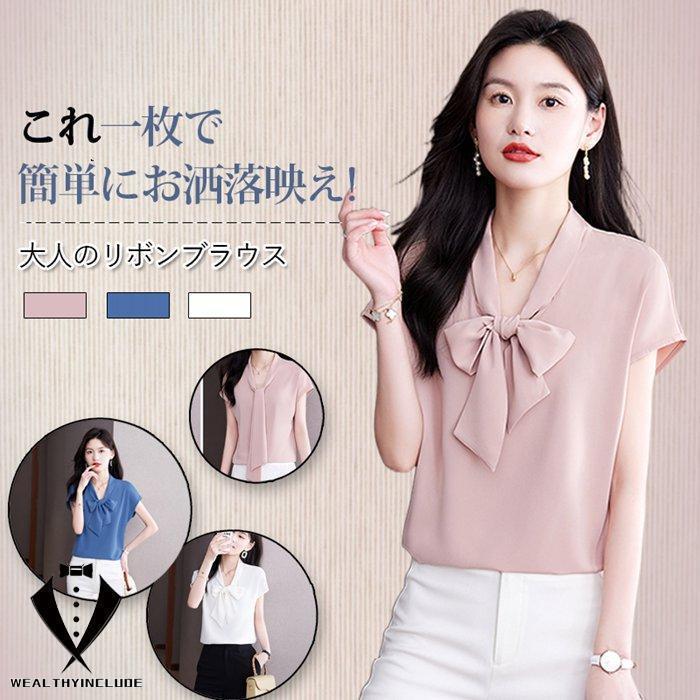 ボウタイブラウス フォーマル 半袖 ブ レディースファッション 人気 ホワイト ピンク ブルー M L XL 2XL