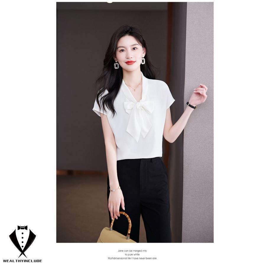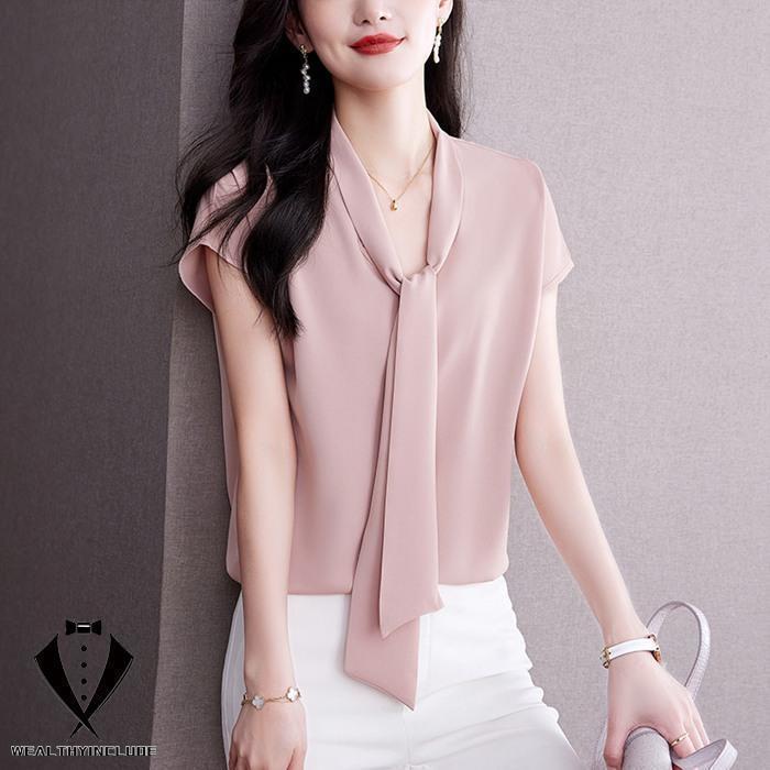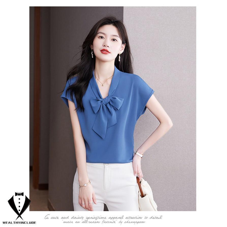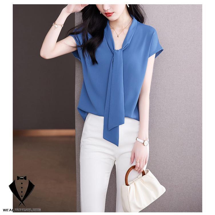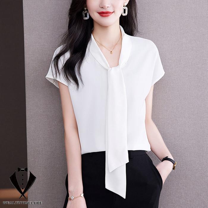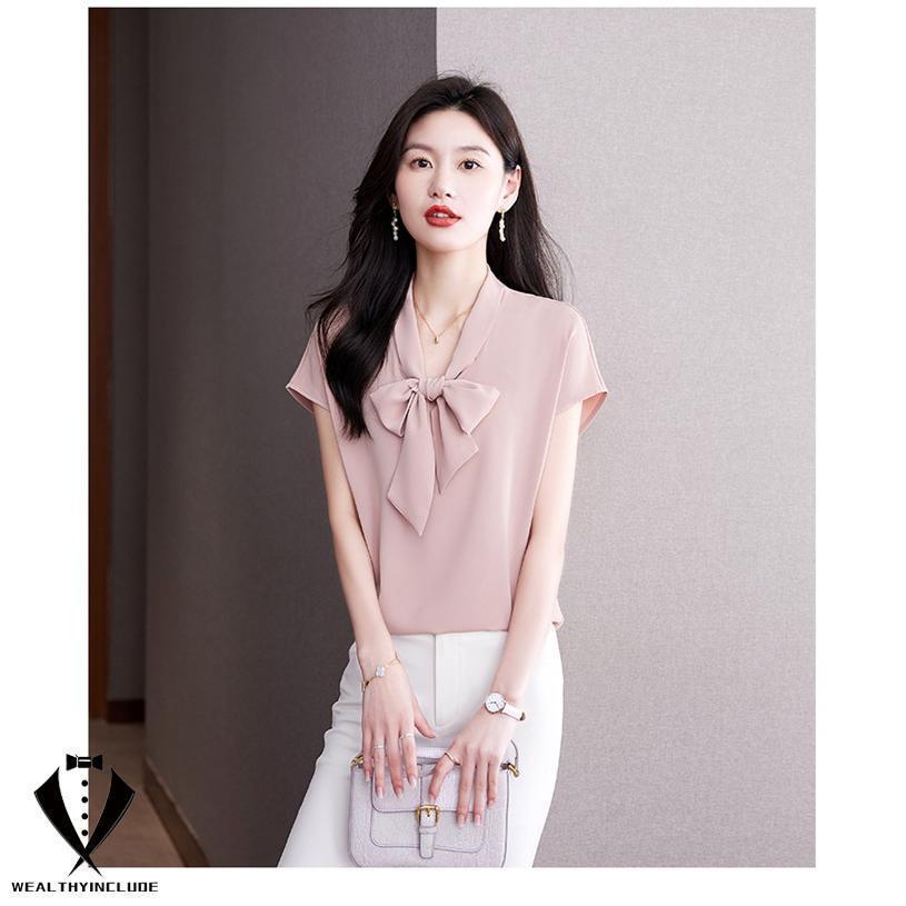 ボウタイブラウス フォーマル 半袖 ブ レディースファッション 人気 ホワイト ピンク ブルー M L XL 2XL