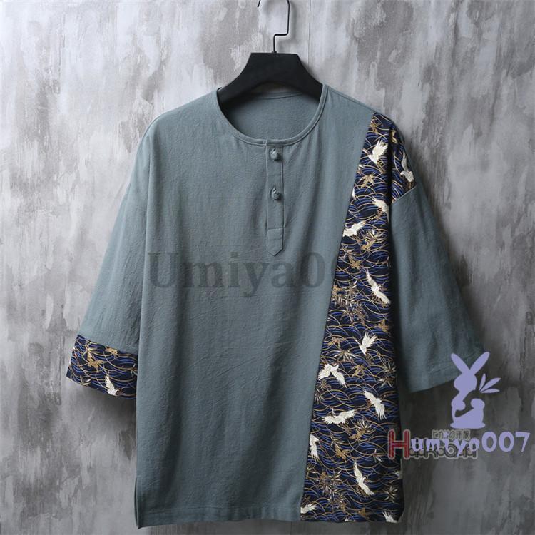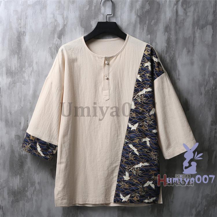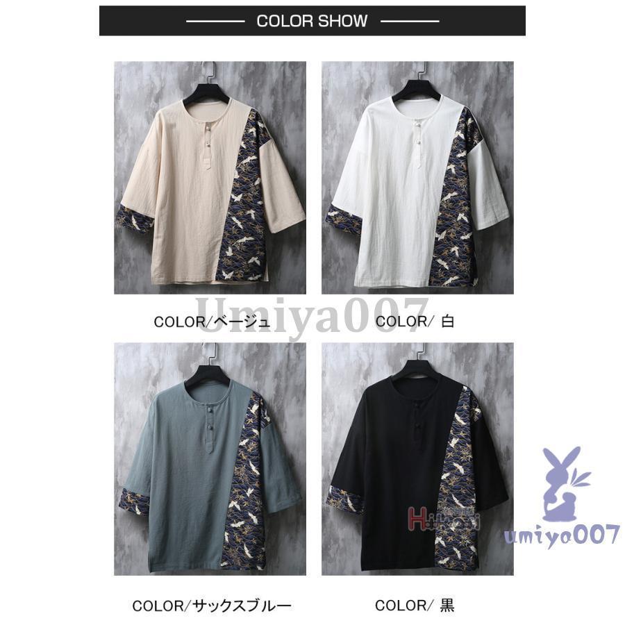 ヘンリーネック tシャツ メンズ 綿麻 メンズファッション 人気 ベージュ 白 サックスブルー 黒 M L XL 2XL 3XL 4XL 5XL