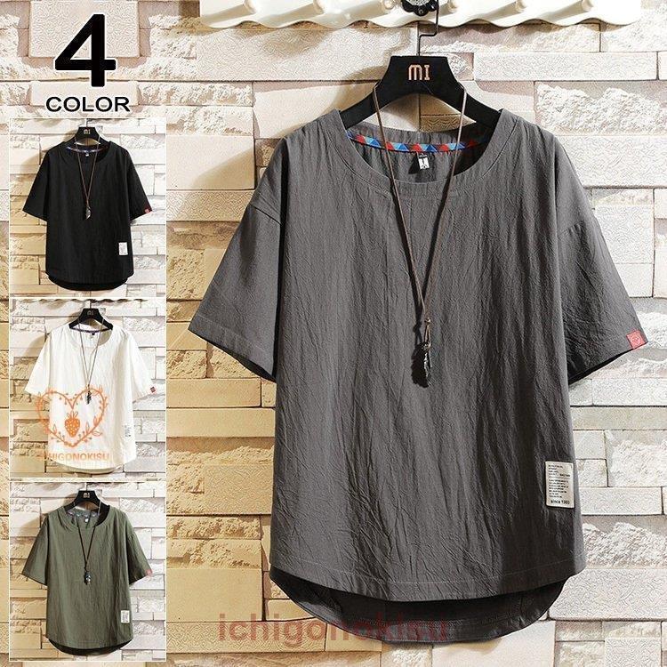 半袖Tシャツ Tシャツ メンズ カット トップス Tシャツ カットソー 人気 黒 白 ダークグレー グリーン M L XL 2XL 3XL 4XL 5XL