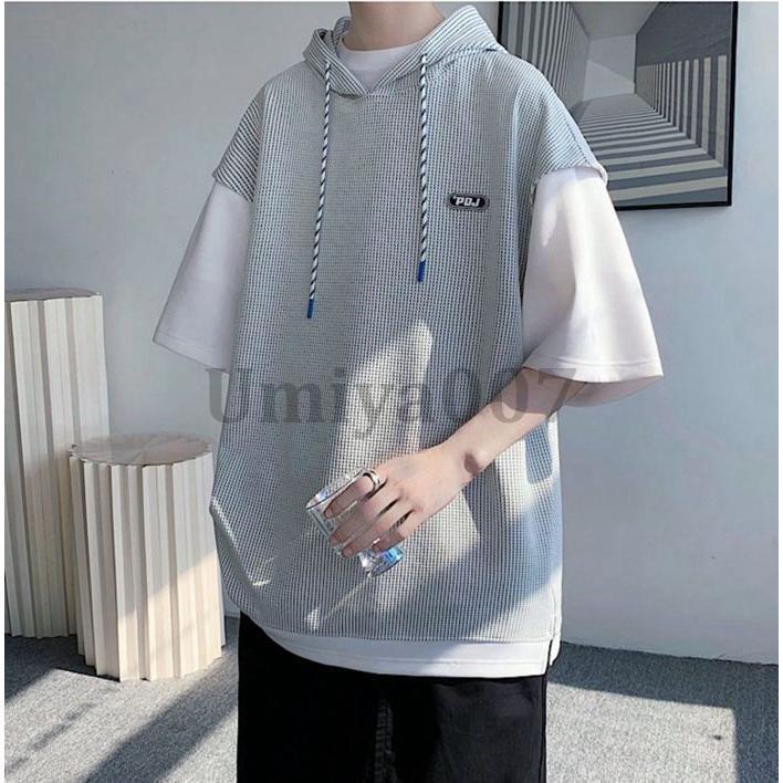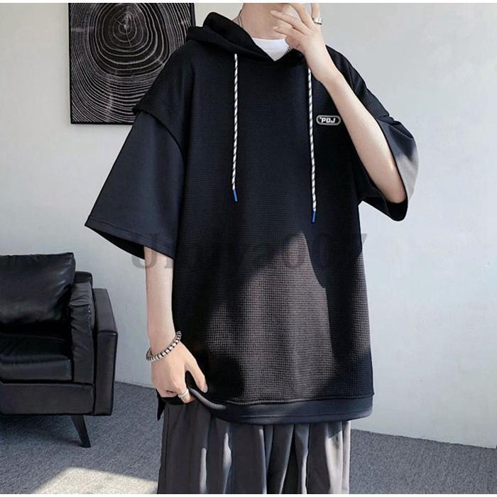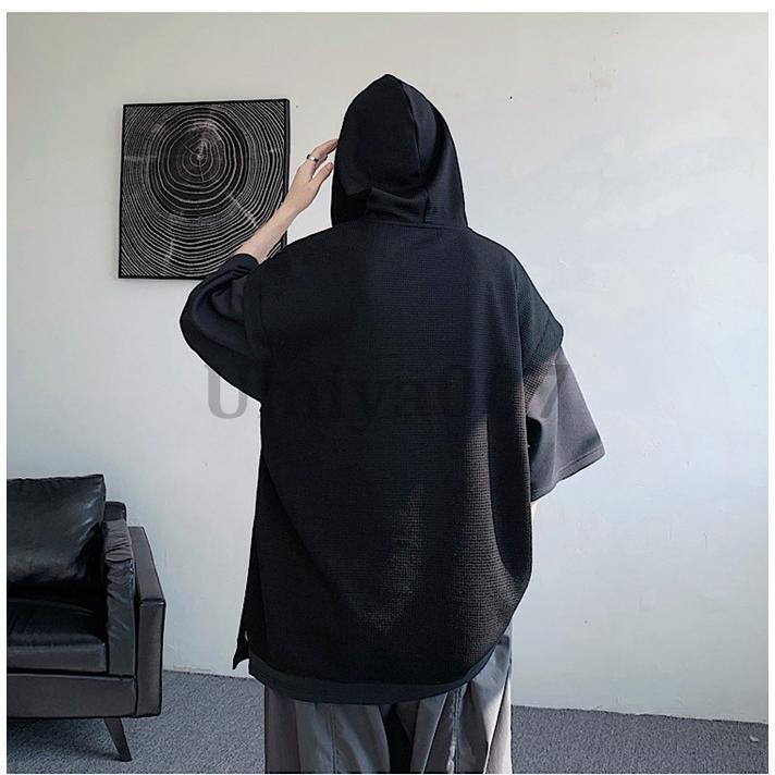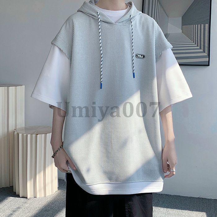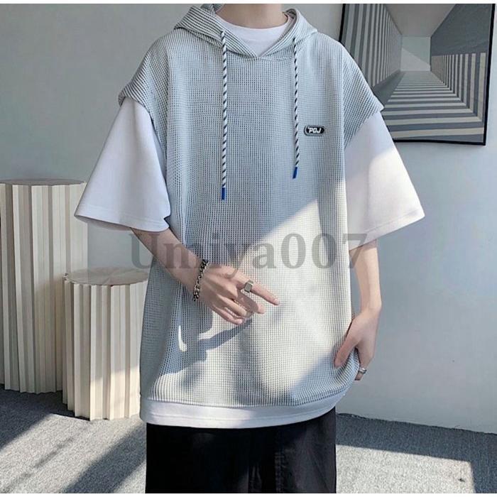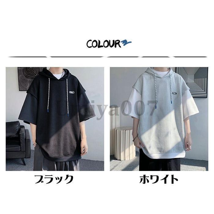 ワッフル パーカー メンズ 半袖 おし トップス Tシャツ カットソー 通販 ホワイト ブラック L XL 2XL