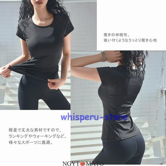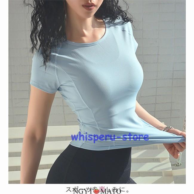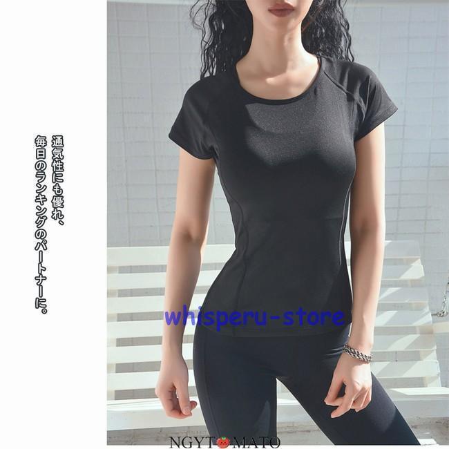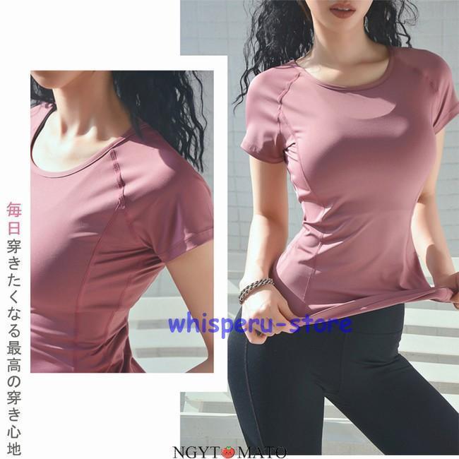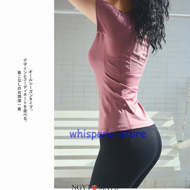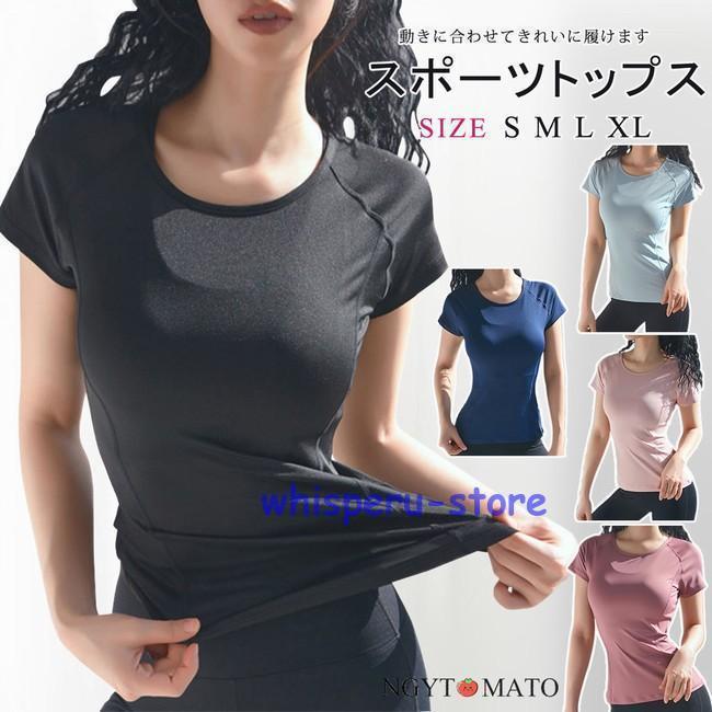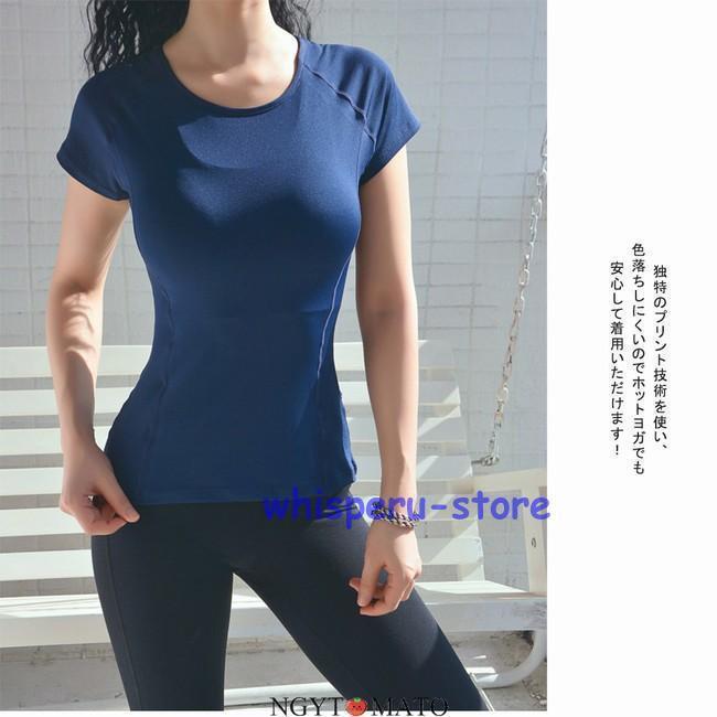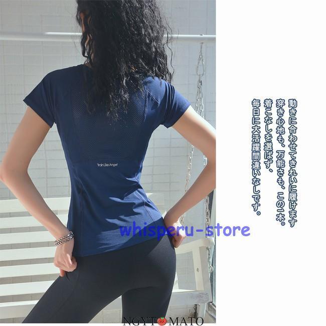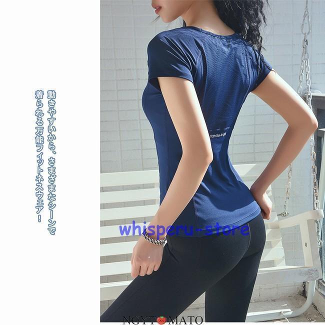 ヨガウェア ランニングウェア レディー トップス Tシャツ カットソー 人気 ブラック ブルー ロイヤルブルー ピンク あずきいろ S M L XL