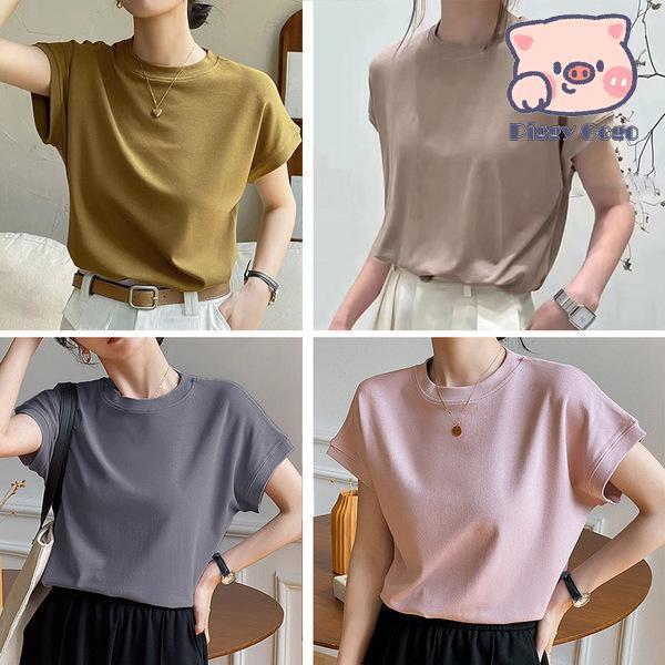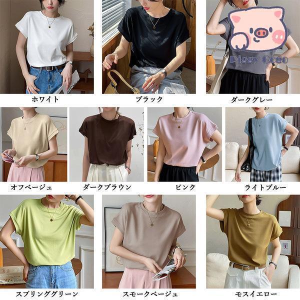フレンチスリーブ 半袖 Tシャツレディ トップス Tシャツ カットソー 通販 オフベージュ ブラック ダークグレー スプリンググリーン ライトブルー ピンク モスイー スモークベージュ