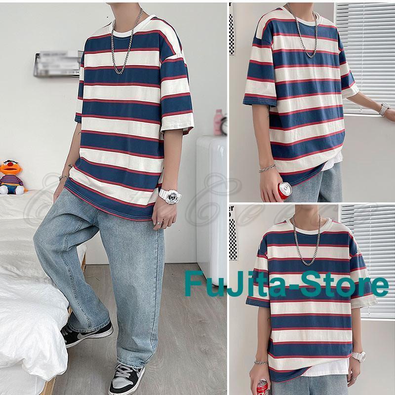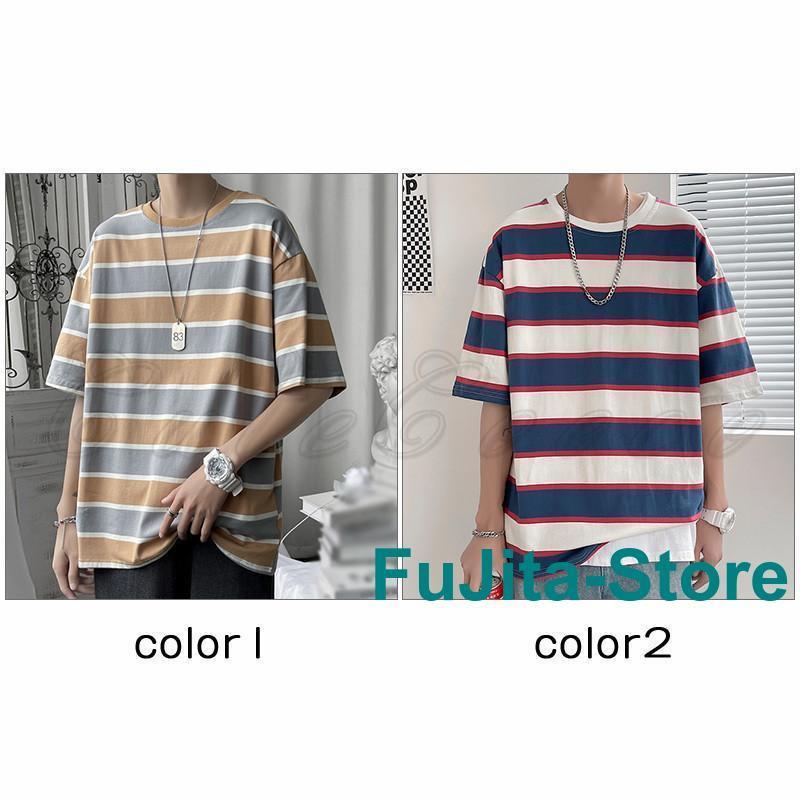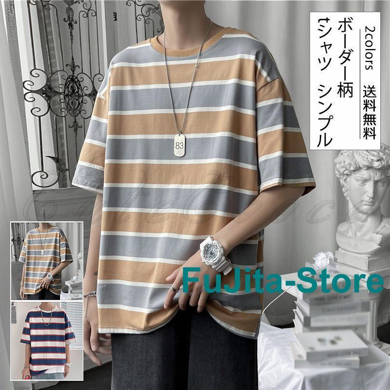 tシャツ メンズ 半袖 ボーダー柄 ト トップス Tシャツ カットソー 通販 color1 color2 M L XL 2XL