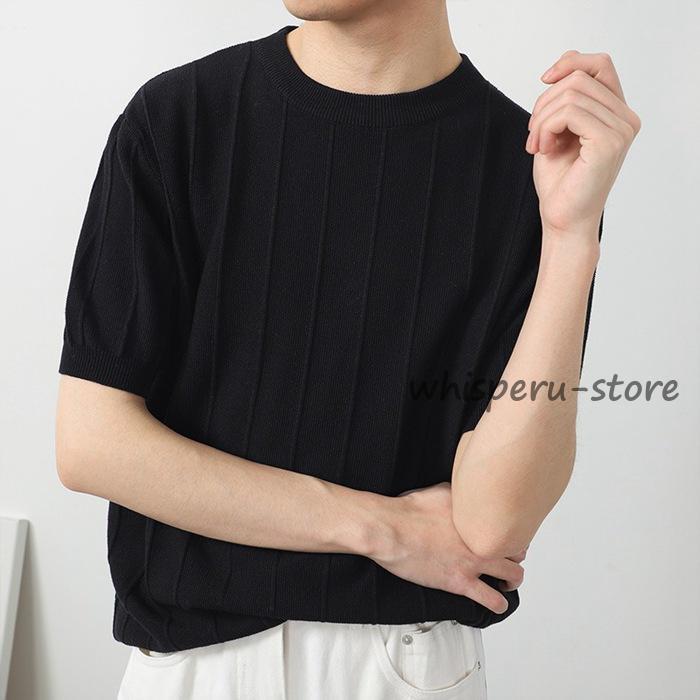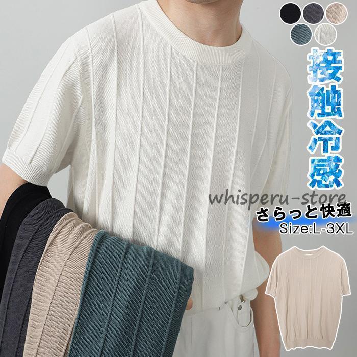 接触冷感 サマーニット メンズ サマー メンズファッション 通販 ホワイト ブルー 杏色 ブラック グレー L XL 2XL 3XL
