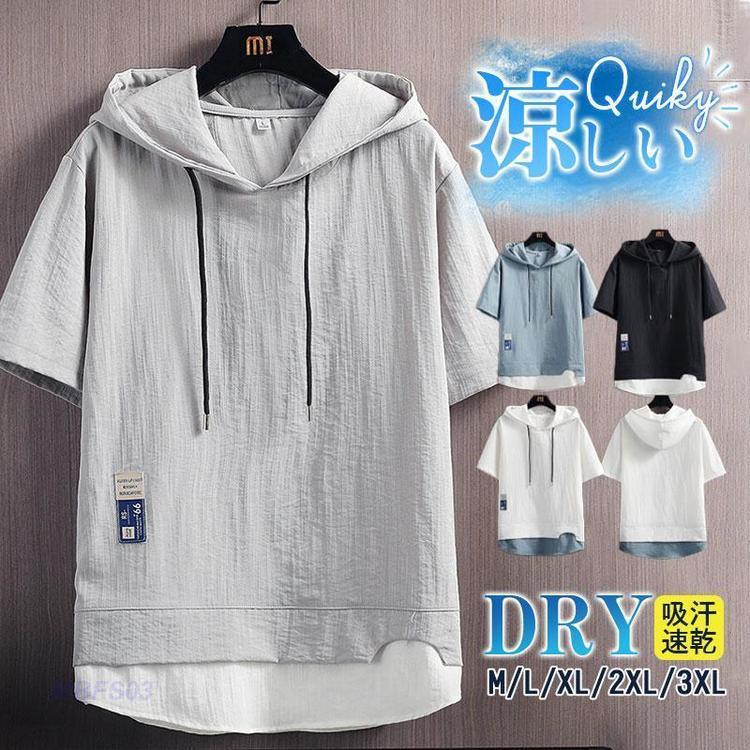 パーカー メンズ 半袖 夏用 接触冷感 トップス Tシャツ カットソー 通販 A01 A02 A03 A04 M L XL 2XL 3XL