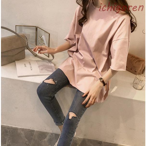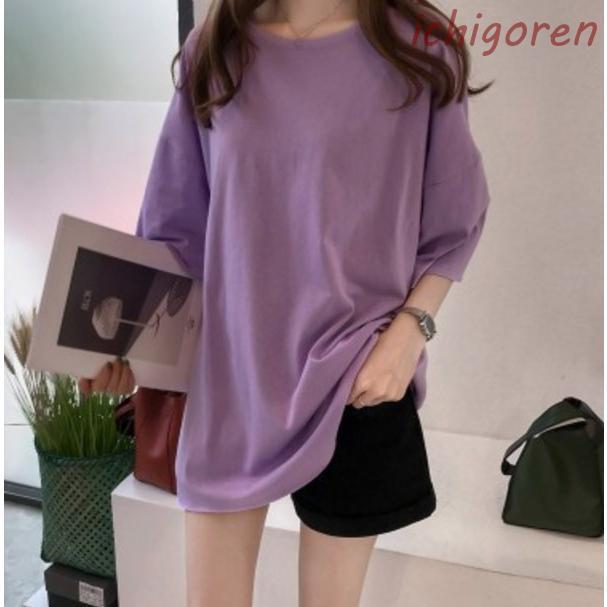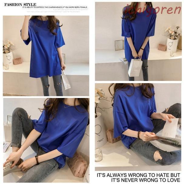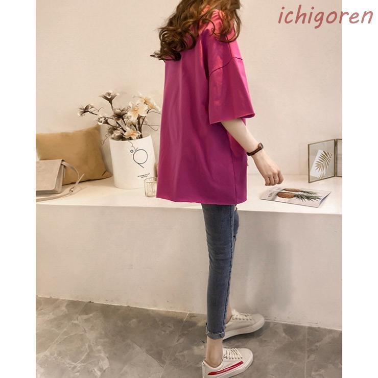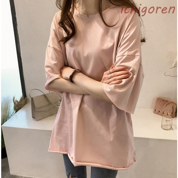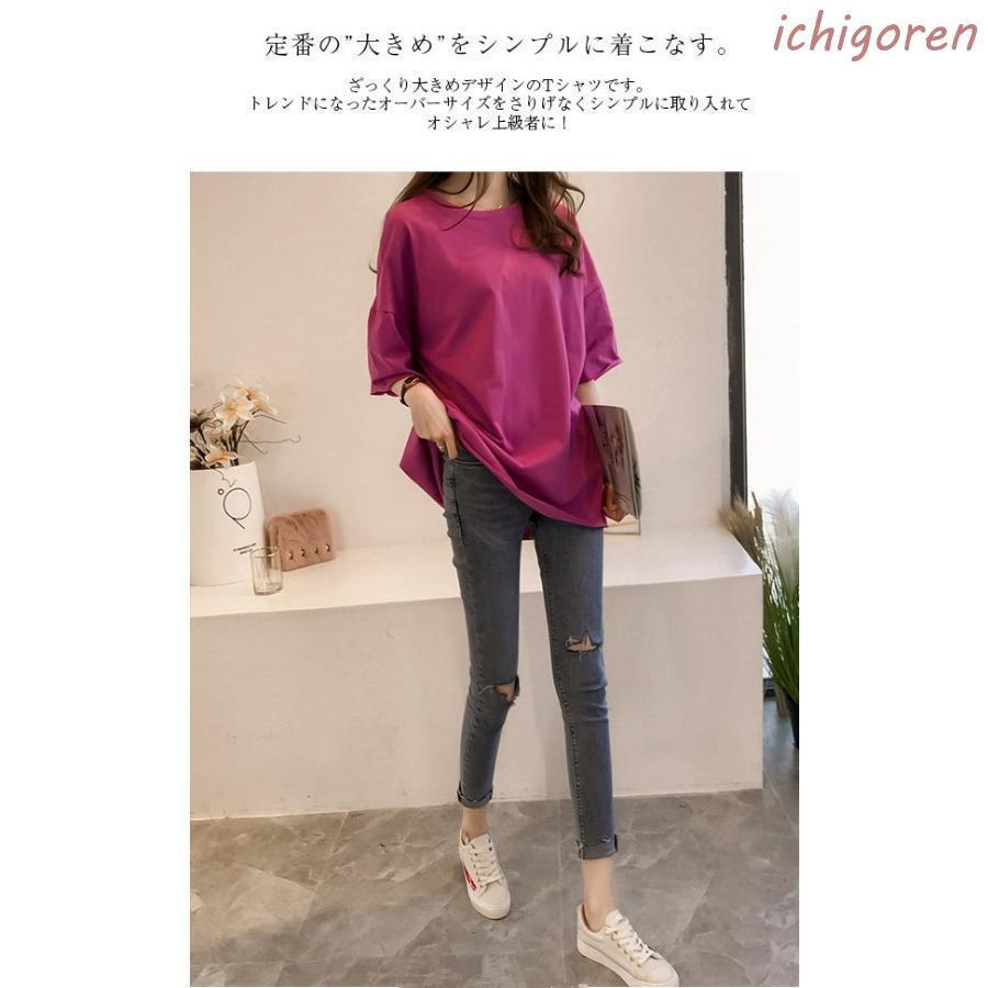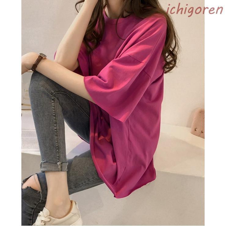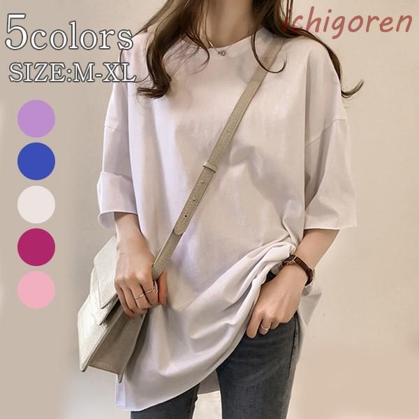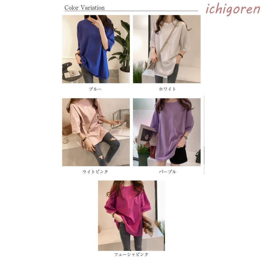 ビッグ Tシャツ 5color シンプ トップス Tシャツ カットソー 人気 M L XL ホワイト ブルー ライトピンク パープル フューシャピンク