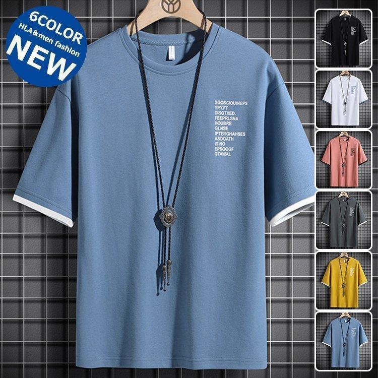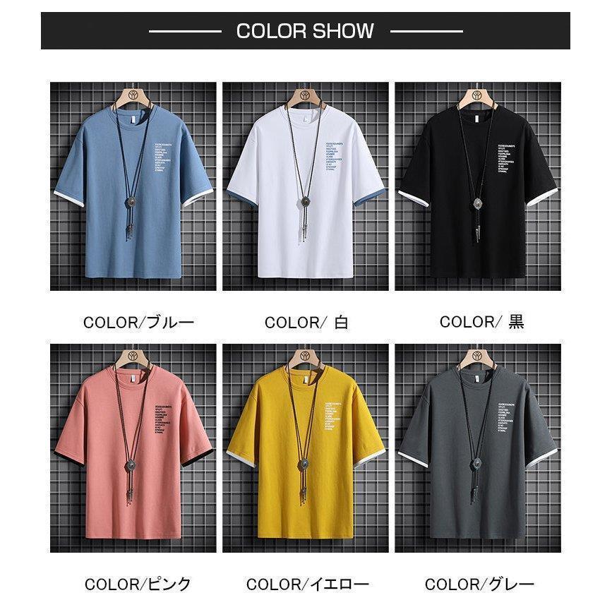 Tシャツ メンズ 半袖 ティーシャツ トップス Tシャツ カットソー 人気 ブルー 白 黒 ピンク イエロー グレー M(日本XS相当) L(日本S相当) XL(日本M相当) 2XL(日本L相当) 3XL(日本LL相当) 4XL(日本3L相当) 5XL(日本4L相当)