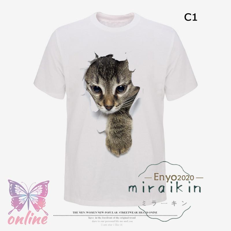 可愛い 3D 猫 Tシャツ 半袖 男女 レディースファッション 通販 C1 C2 C3 C4 C5 C6 S M L XL XXL XXXL