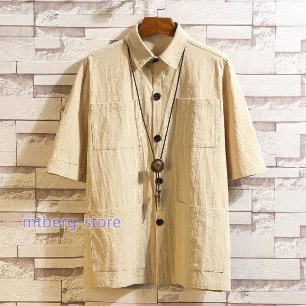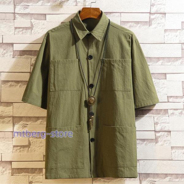 シャツ メンズ 五分袖シャツ 半袖シャ トップス Tシャツ カットソー 通販 ブラック カーキ グリーン M L XL 2XL 3XL 4XL 5XL