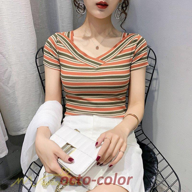 tシャツ Tシャツ 細身 レディース トップス Tシャツ カットソー 通販 グリーン オレンジ(写真参考) レッド カーキ(写真参考) S M L XL XXL