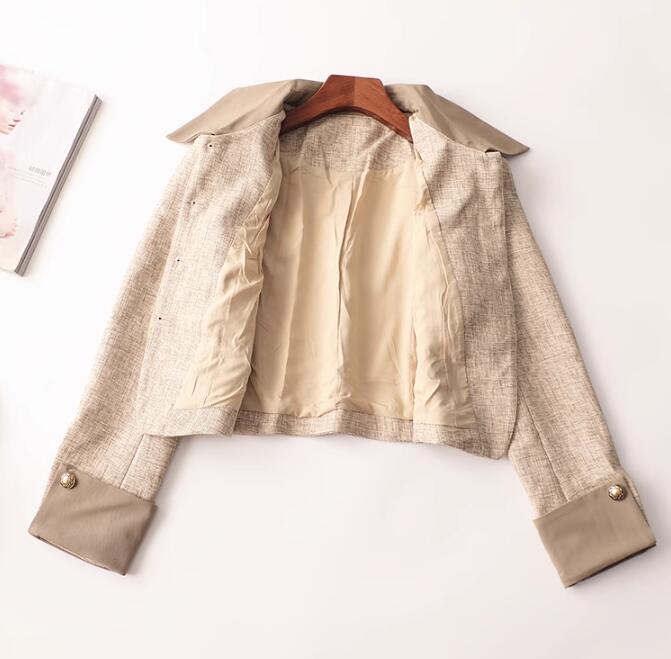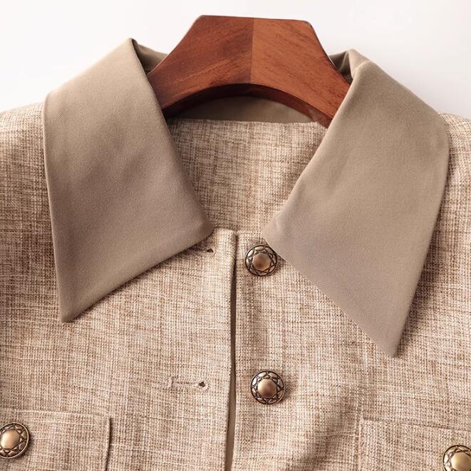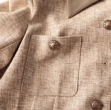 小さな型のジャケットで、またスカートは高めの位置でウエストを細くしているので、優れた裁断で体型カバーしてくれる同時に足を長くて着痩せ効果が期待できます。