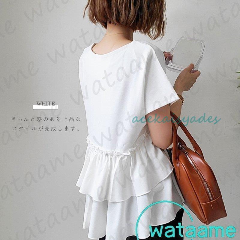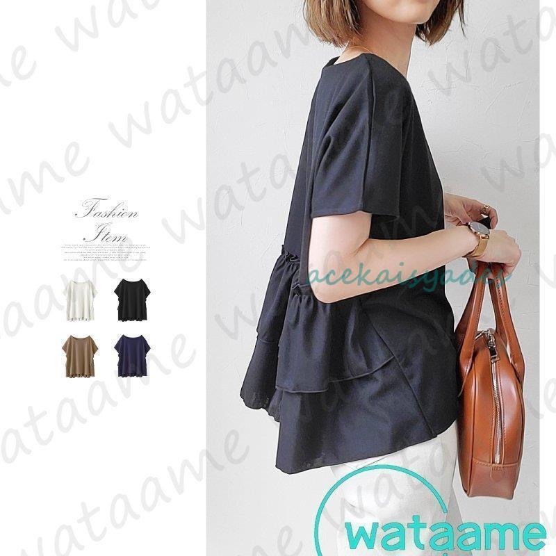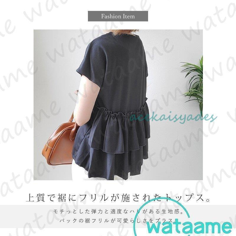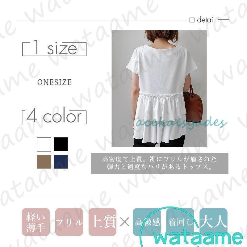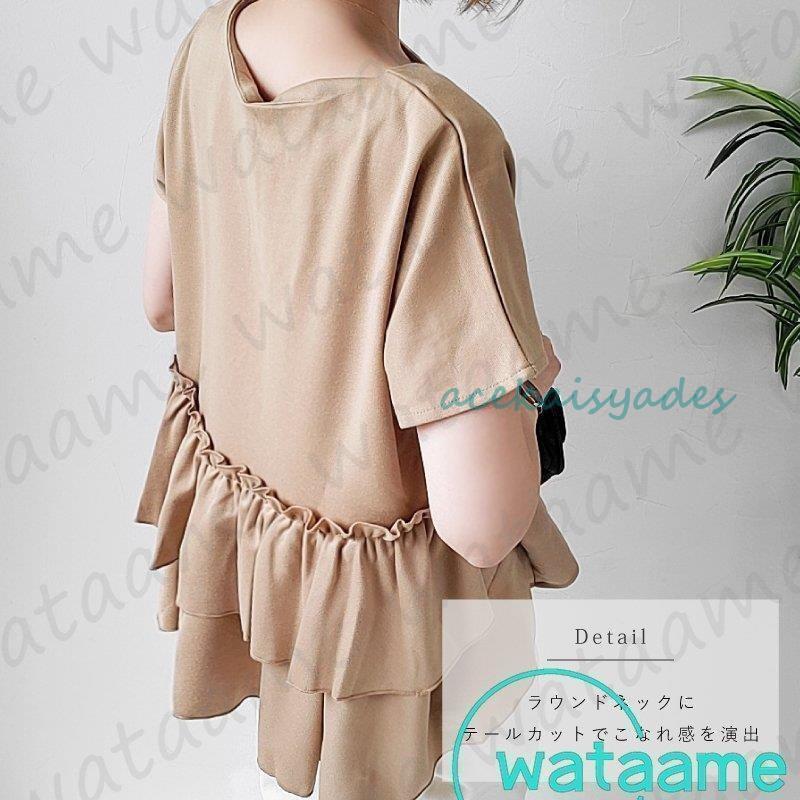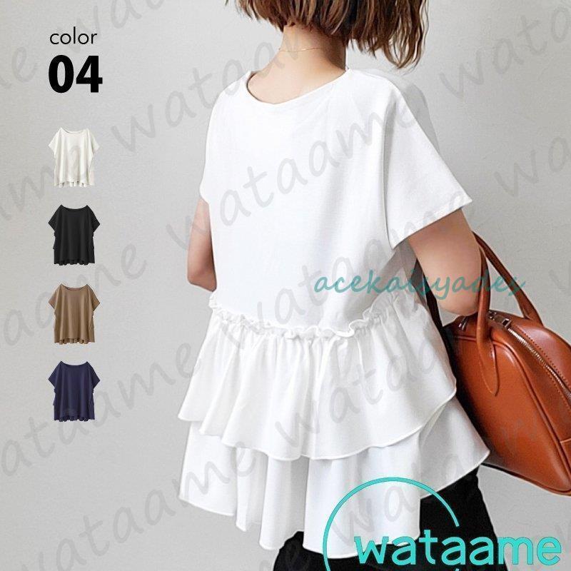 バック フリル トップス 半袖 カジュ トップス Tシャツ カットソー 特集 01.ホワイト 02.ブラック 03.ブラウン 04.ネイビー