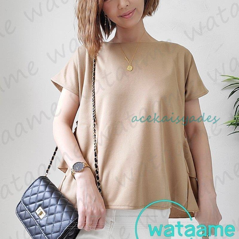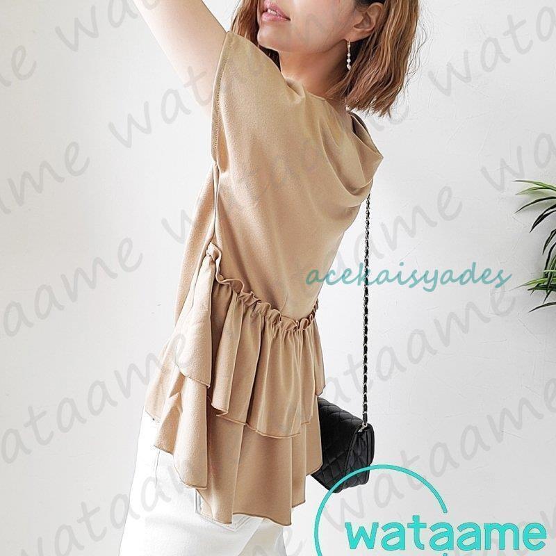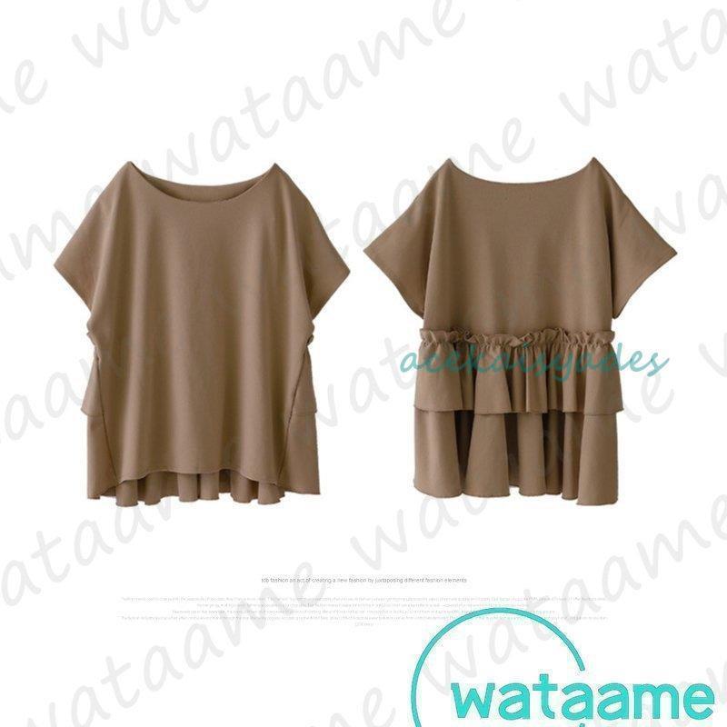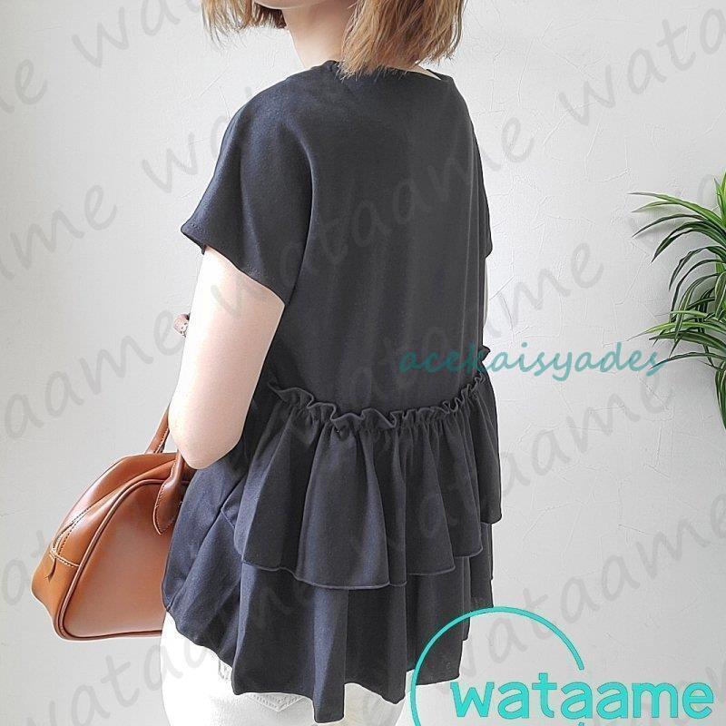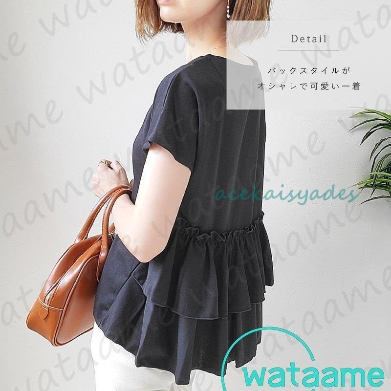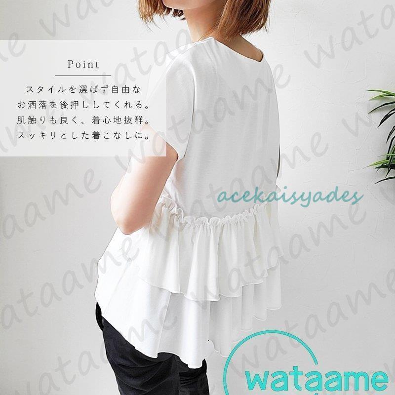 バック フリル トップス 半袖 カジュ トップス Tシャツ カットソー 特集 01.ホワイト 02.ブラック 03.ブラウン 04.ネイビー