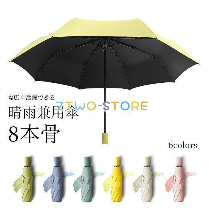 日傘 折りたたみ 晴雨兼用 三つ折 8 傘 レディース雨傘 早い者勝ち ライトグリーン ライトブルー グレーグリーン イエロー ベージュ ピンク