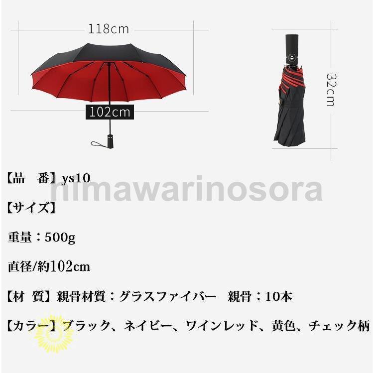 折りたたみ傘 傘 梅雨 豪雨 自動開閉 傘 レディース雨傘 豊富 ブラック ネイビー ワインレッド 黄色 チェック柄