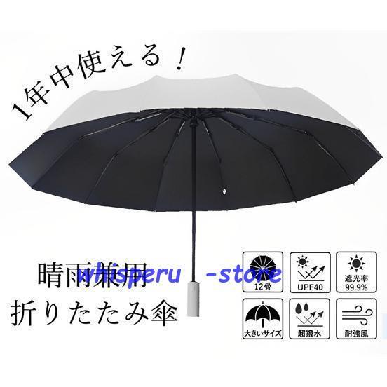 ワンタッチ 大きい 12本骨 晴雨兼用 バッグ 小物 ブランド雑貨 通販 グレー ブラック ブルー