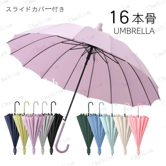 傘 レディース メンズ 16本骨 長傘 バッグ 小物 ブランド雑貨 豊富 ピンク パープル ブラック グリーン ネイビー グレー ダークグリーン ラートグリーン ベージュ ブルー