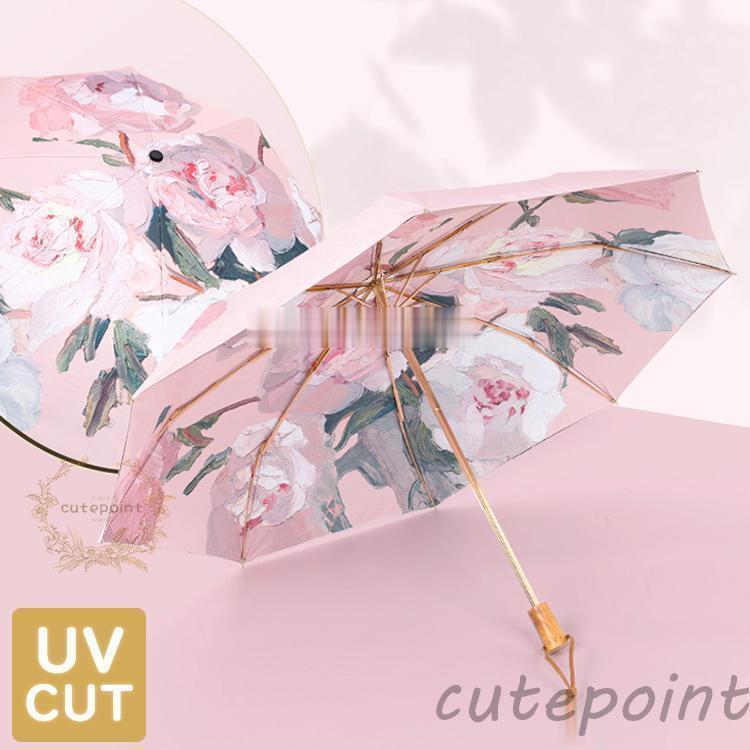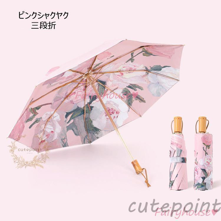 日傘 折りたたみ傘 レディース おしゃ 傘 レディース雨傘 豊富 ピンクシャクヤク ホワイトローズ