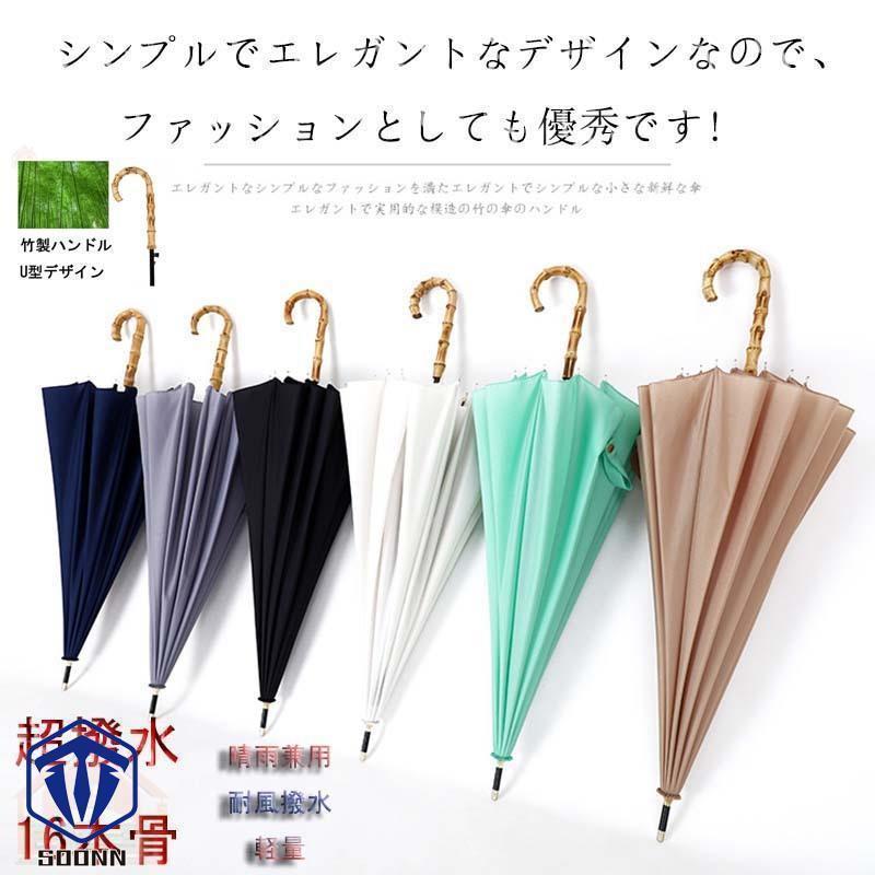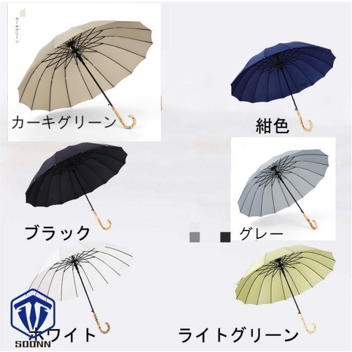 16本骨傘 折れにくい 竹ハンドル 晴 バッグ 小物 ブランド雑貨 豊富 ブラック ホワイト 紺色 グレー ライトグリーン カーキグリーン