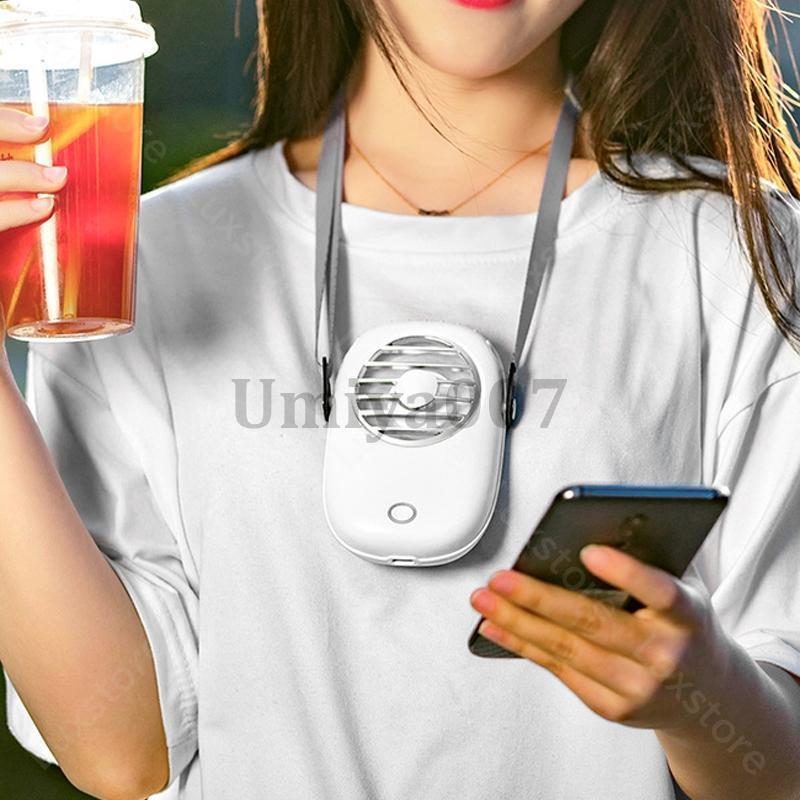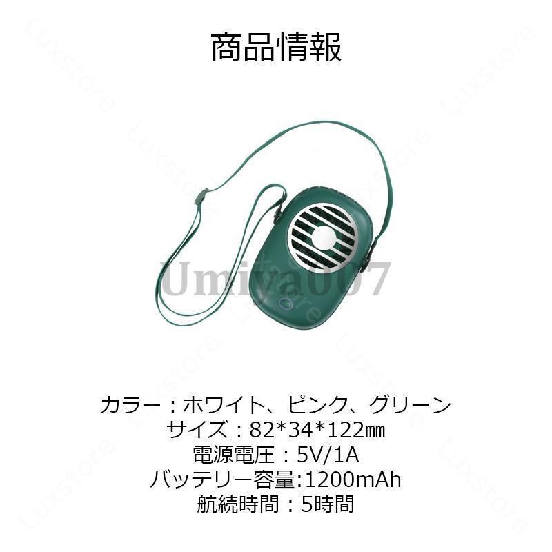 首掛け扇風機 羽なし 卓上 首かけ 手 ホワイト ピンク グリーン