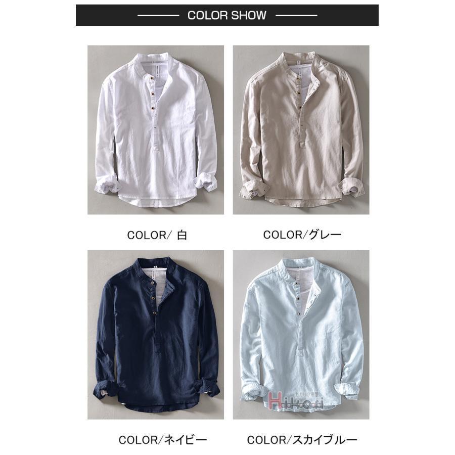 シャツ 綿麻 麻シャツ プルオーバーシ インナー 下着 ナイトウエア 大人気! グレー 白 ネイビー スカイブルー M L XL 2XL
