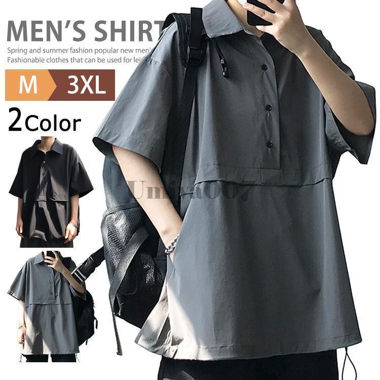 半袖 プルオーバー シャツ メンズ カ メンズファッション 通販 グレー 黒 M L XL 2XL 3XL