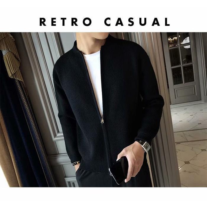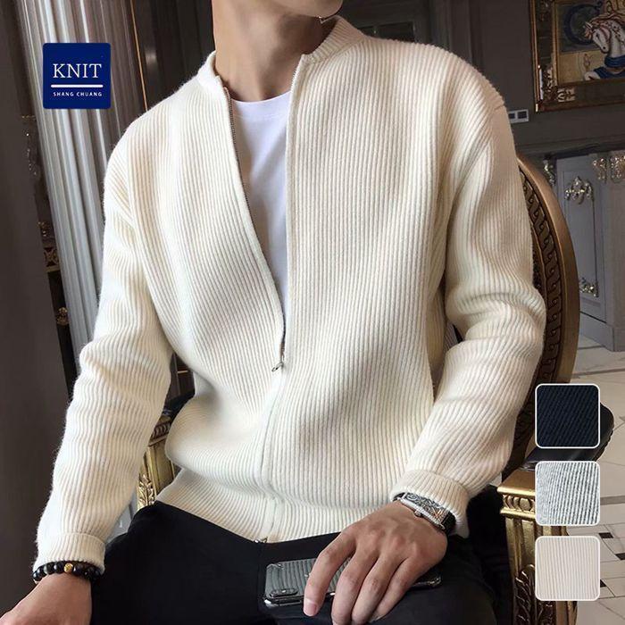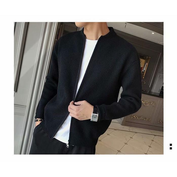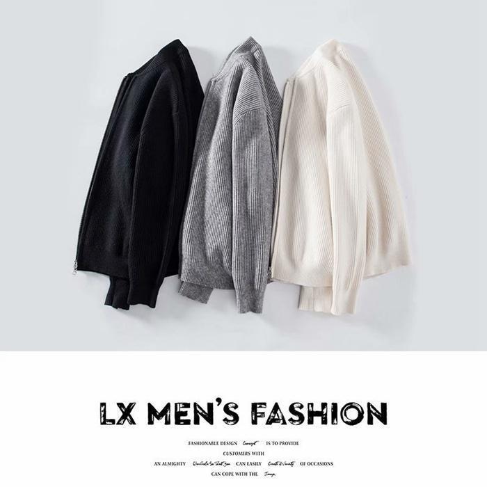 春 ニット カーディガン メンズ クル コート ジャケット 新作 ブラック 杏色 グレー L XL 2XL 3XL