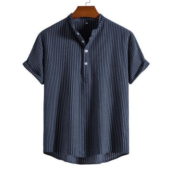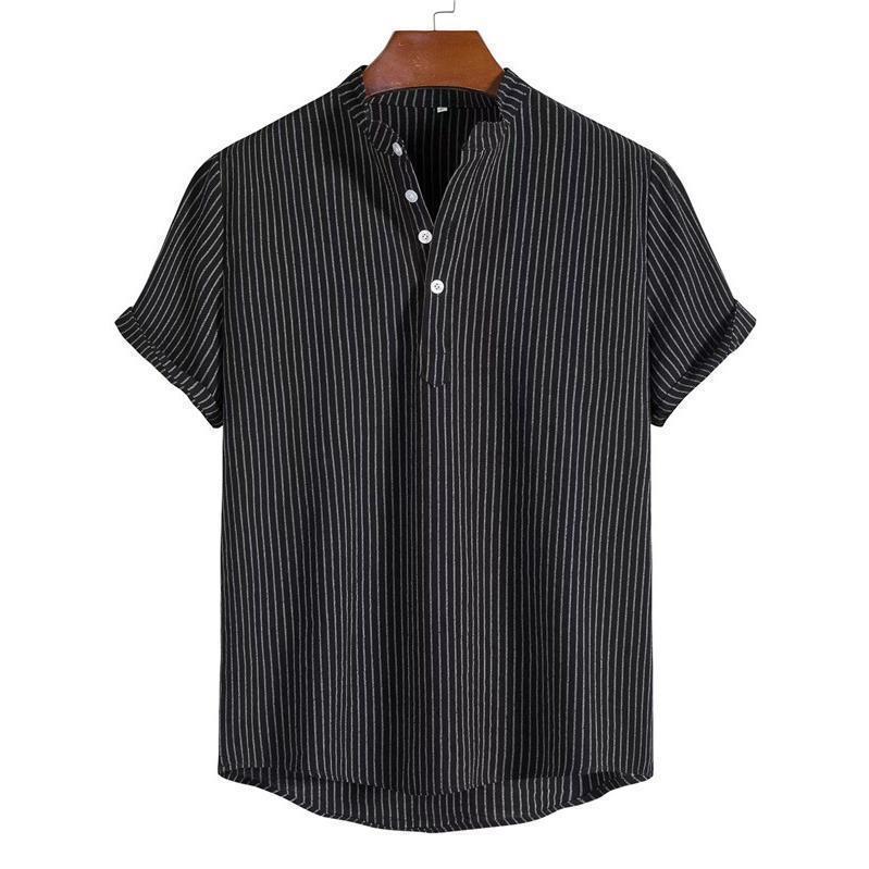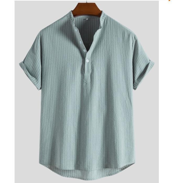 ポロシャツ メンズ 半袖 スポーツ ストライプ 立ち襟 トップス 麻 無地 シンプル アメカジ 綿 夏 カジュアル ゆったり ビジネス