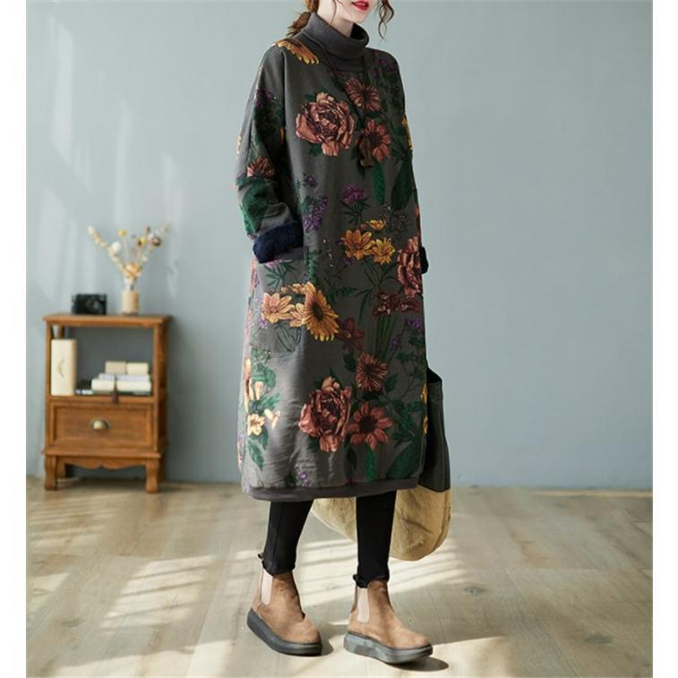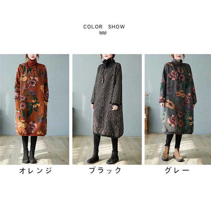 ワンピース レディース 裏起毛 冬 ロ ワンピース 新登場! グレー オレンジ