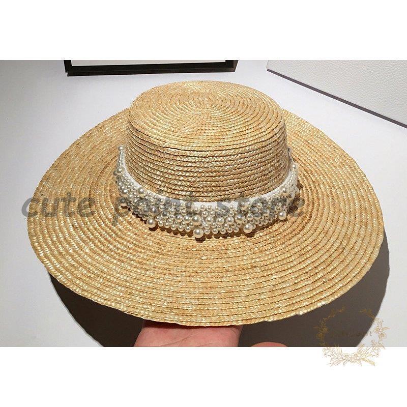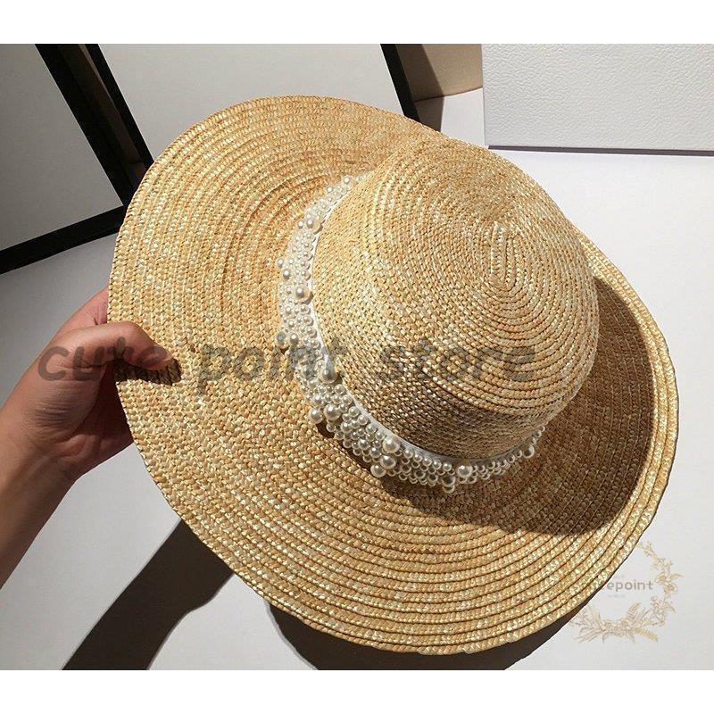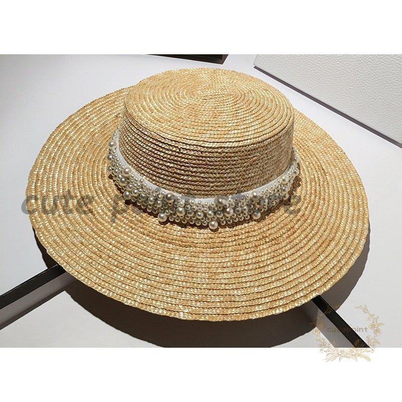 帽子 ハット ストローハット 麦わら帽子 小物 コーディネート 日焼け対策 つば広 パール リゾート ベーシック エレガント ナチュラル ベージュミセス