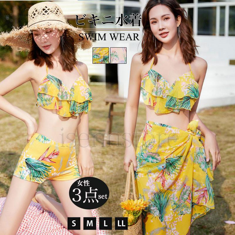 レディース 3点セット 水着 ビキニ レディースファッション 続々入荷中 イエロー ピンク ブラウン S M L XL