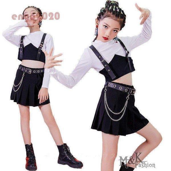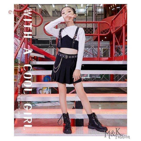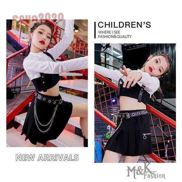 キッズダンス衣装 セットアップ へそ出し スカート 女の子 ヒップホップ 子供 韓国 HIPHOP ステージ衣装 ジャズダンス チアガール 発表会 演出服 応援団