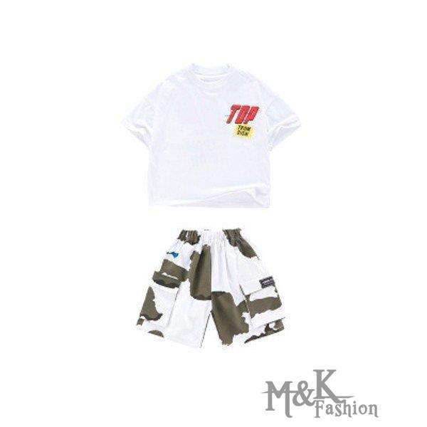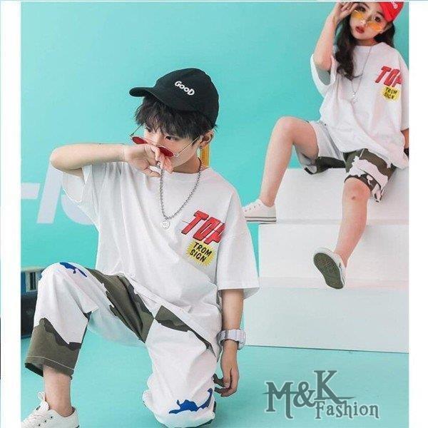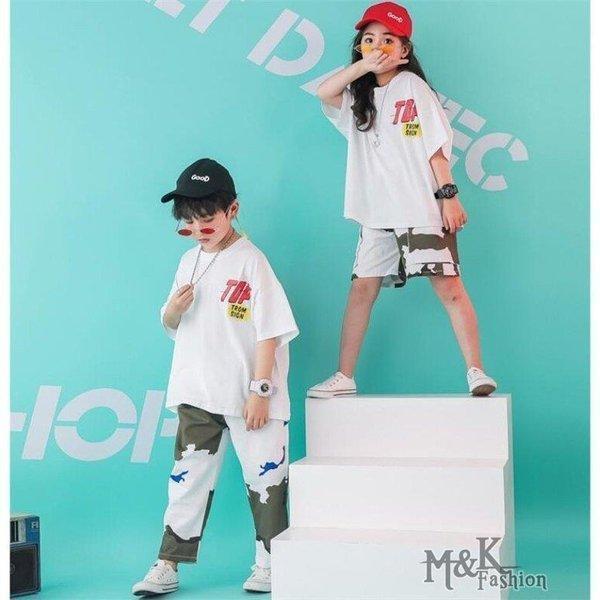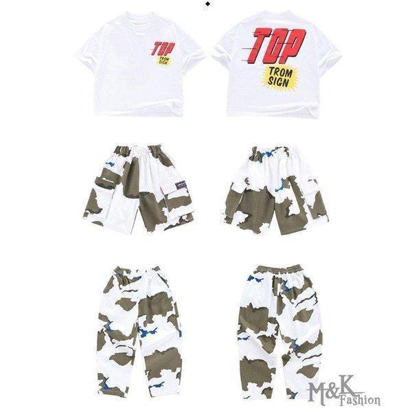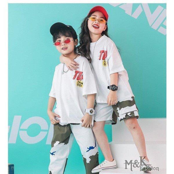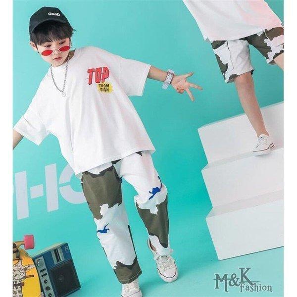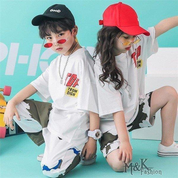 キッズダンス衣装 ヒップホップ 迷彩 HIPHOP 白Tシャツ 子供 女の子 男の子 迷彩パンツ 練習着 レッスン ステージ衣装 ジャズダンス