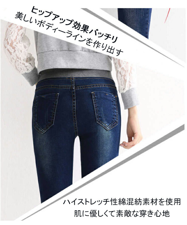 スキニーパンツ 美脚 デニム ストレッチ 春秋 レディース スリムパンツ スキニーデニムパンツ ジーンズ ヒップアップ ハイウエスト Gパン スリム脚幅 着痩せ ジーパン ウエストゴム レギパン