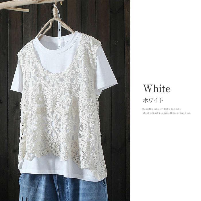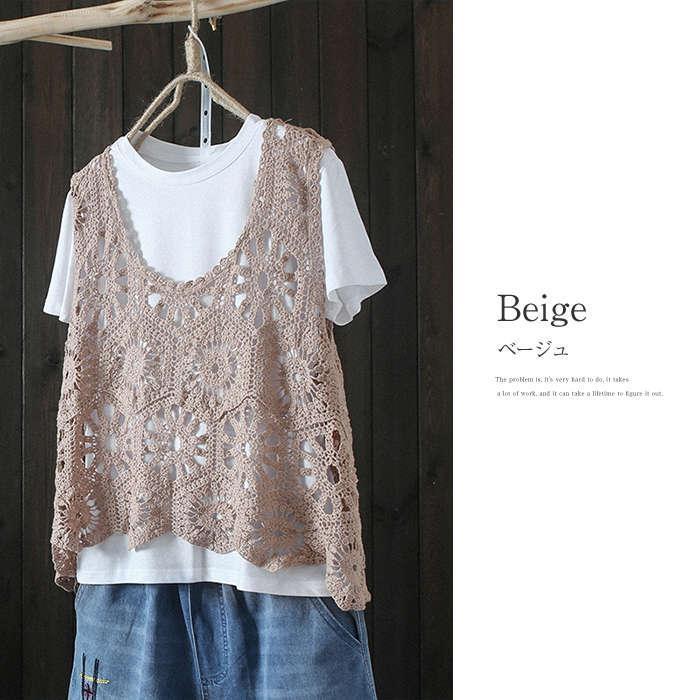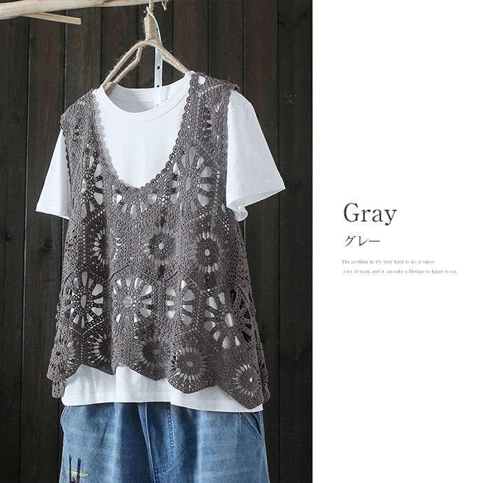ベスト トップス 透かし編み サイドス レディースファッション 豊富 ホワイト グレー ベージュ