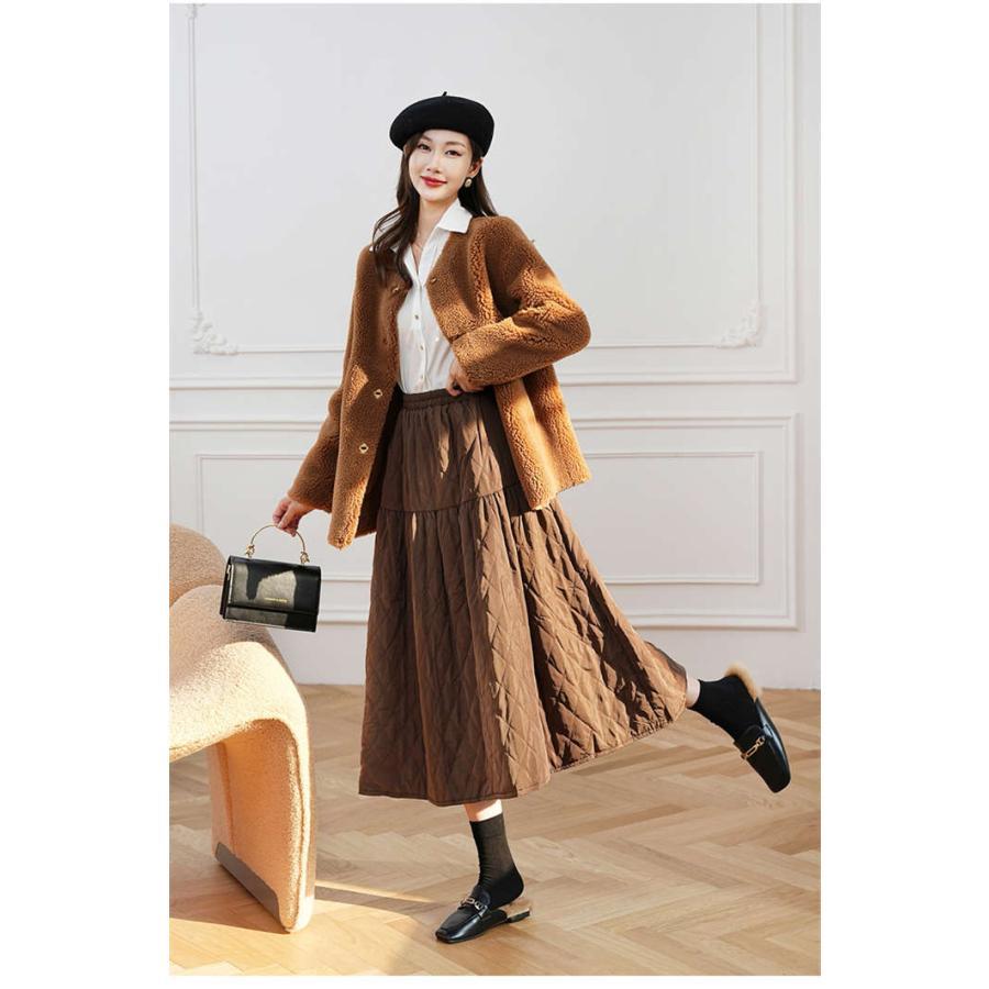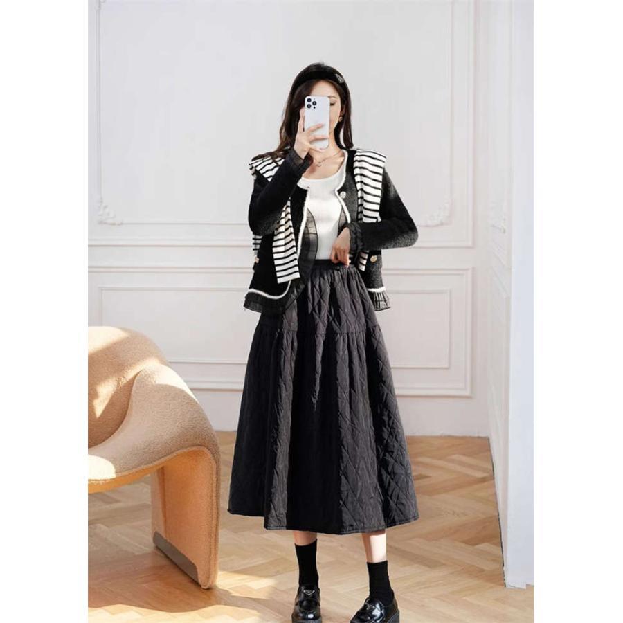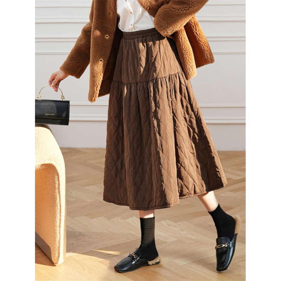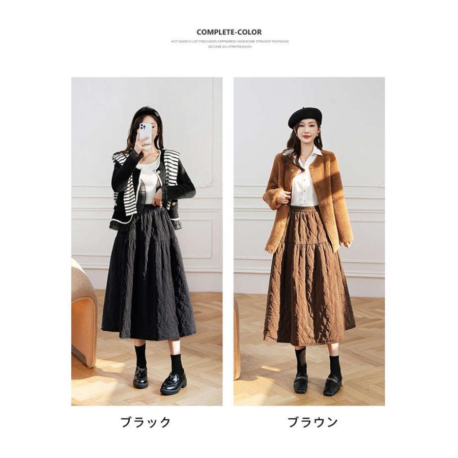 スカート 中綿 ロング 秋冬 レディー ボトムス パンツ 超目玉商品 ブラック ブラウン