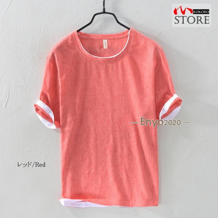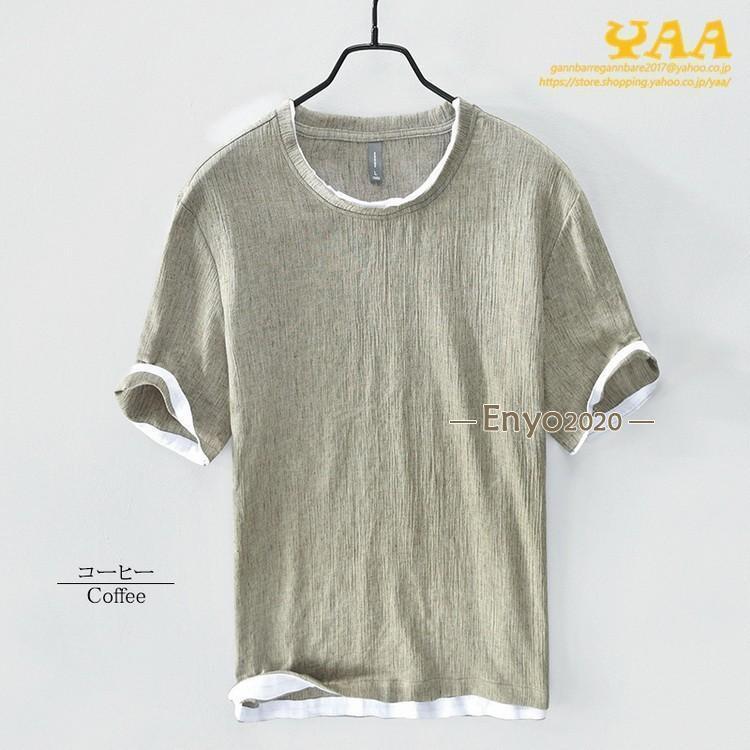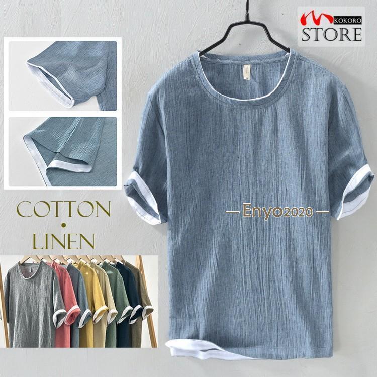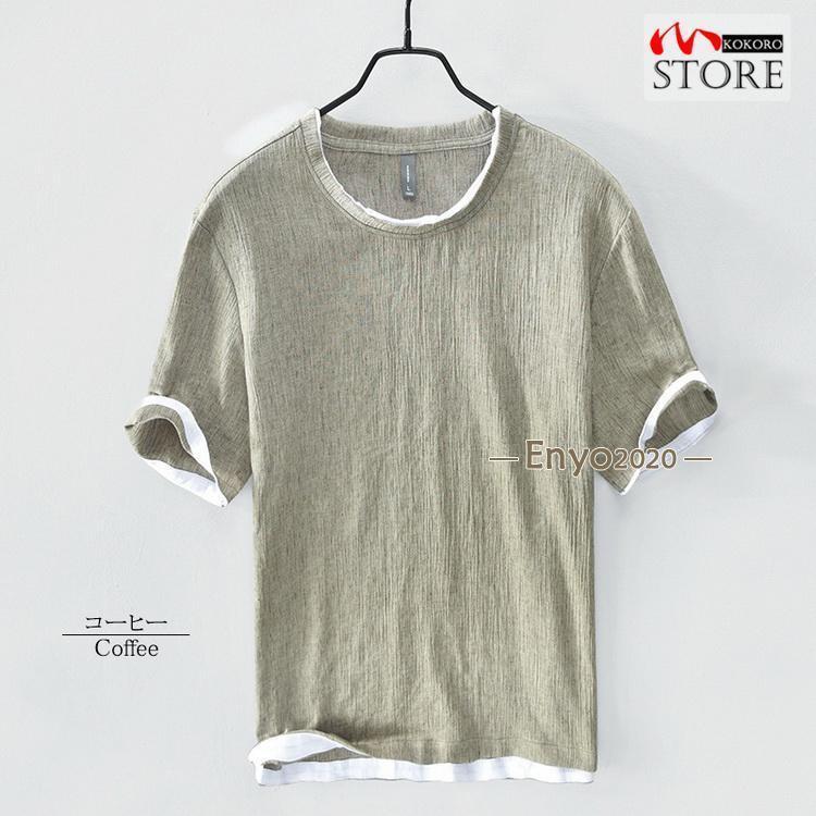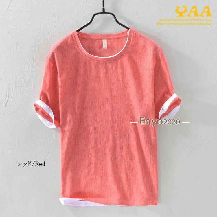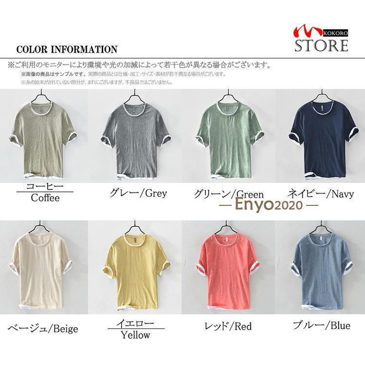 綿麻tシャツ トップス カットソー 半 メンズ ナイトウェア ルームウェア ルームウェア トップス 続々登場 コーヒー グレー グリーン ネイビー ベージュ イー レッド ブルー M L XL 2XL 3XL