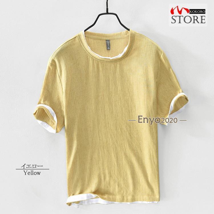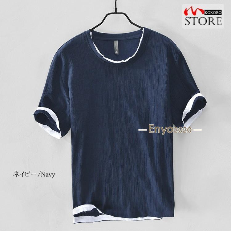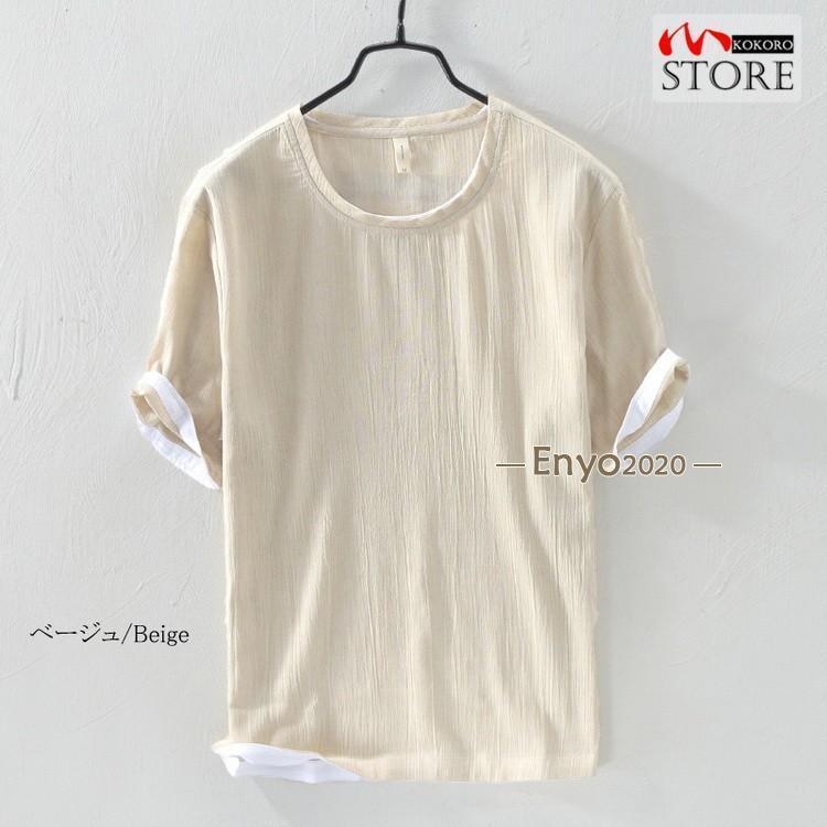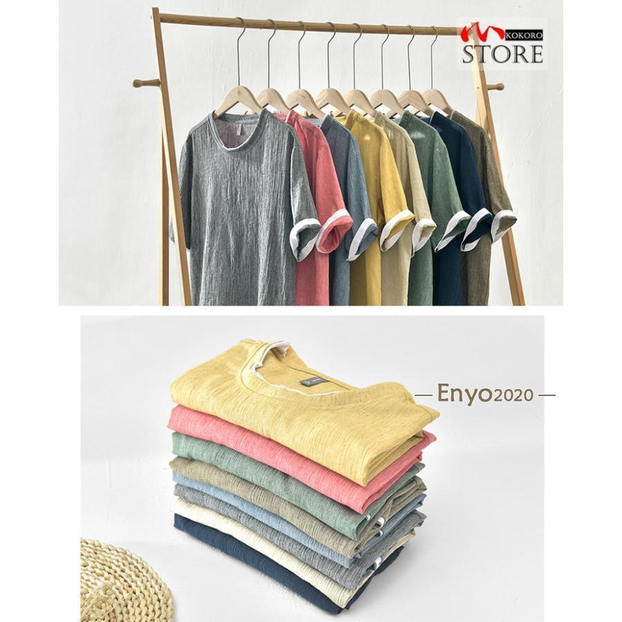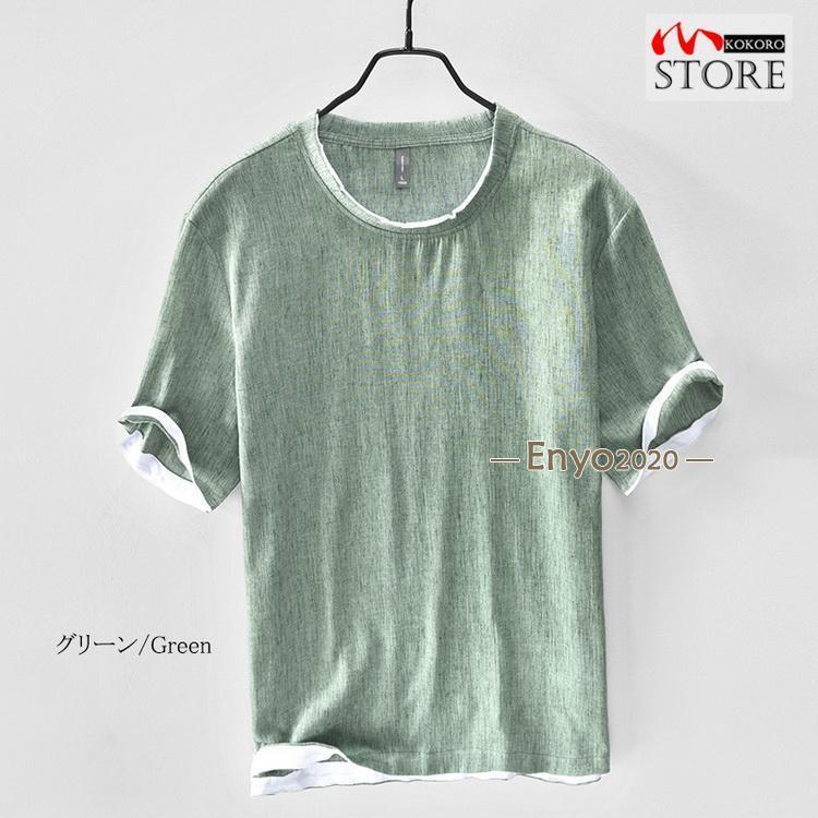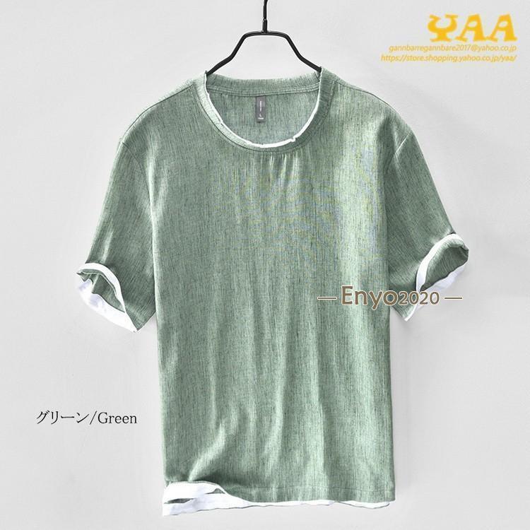 綿麻tシャツ トップス カットソー 半 メンズ ナイトウェア ルームウェア ルームウェア トップス 続々登場 コーヒー グレー グリーン ネイビー ベージュ イー レッド ブルー M L XL 2XL 3XL