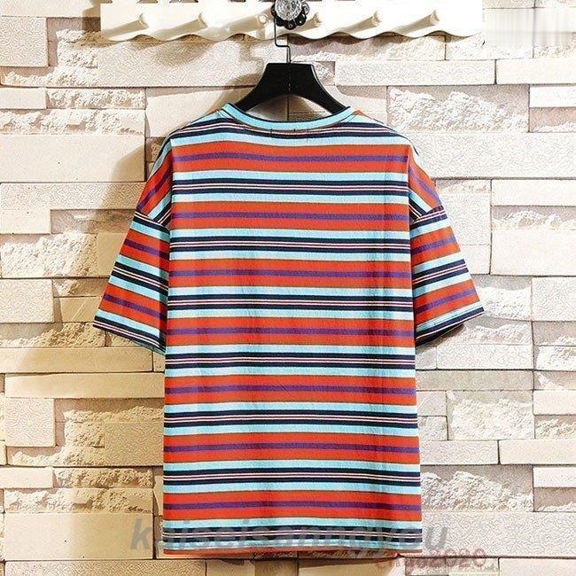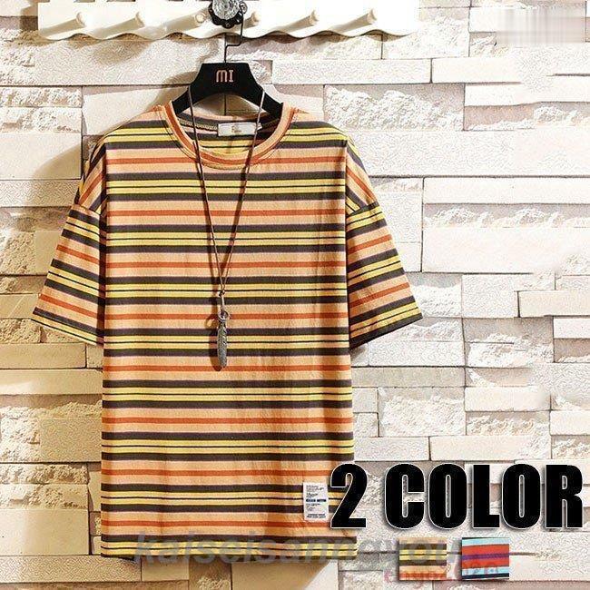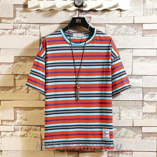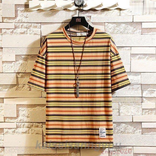 半袖Tシャツ メンズ ボーダーTシャツ メンズファッション 人気 M L XL 2XL 3XL 4XL 5XL 赤 黄