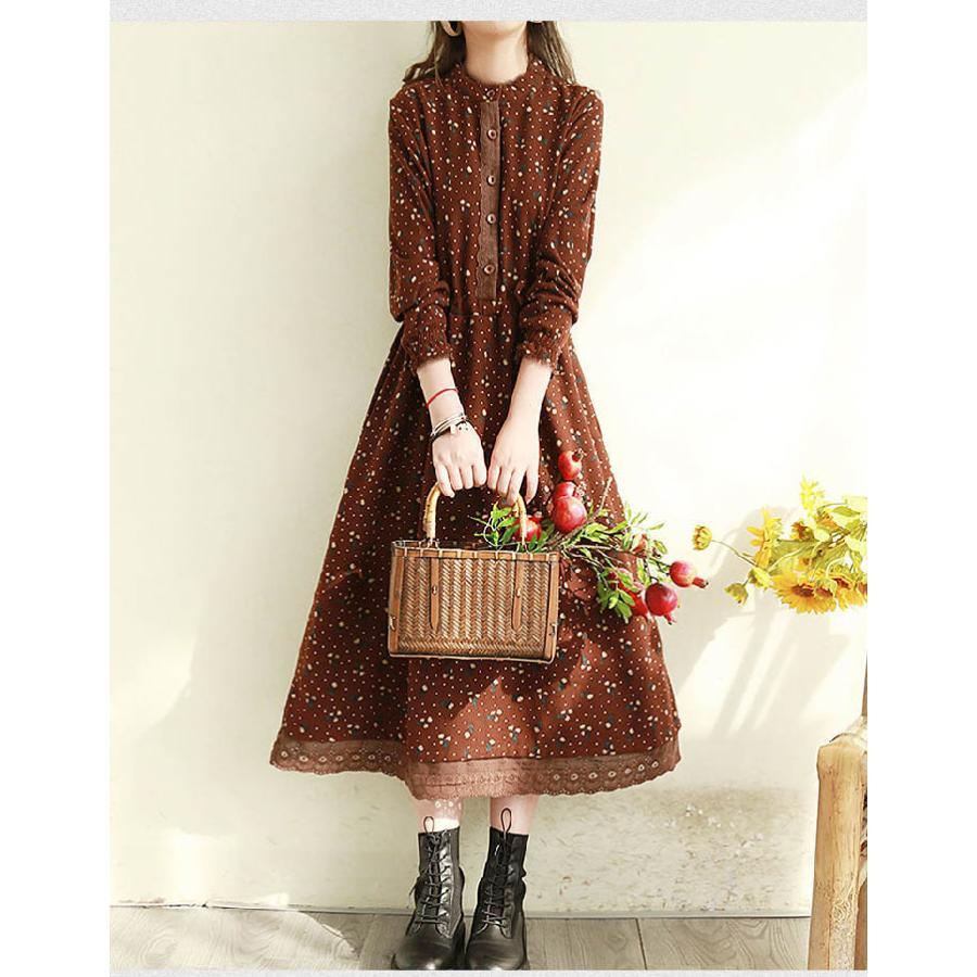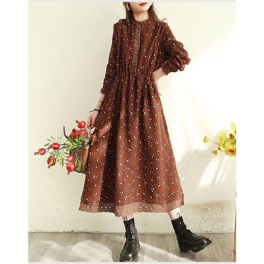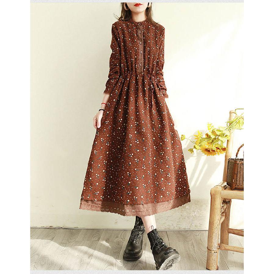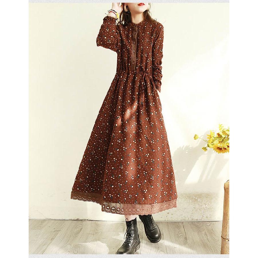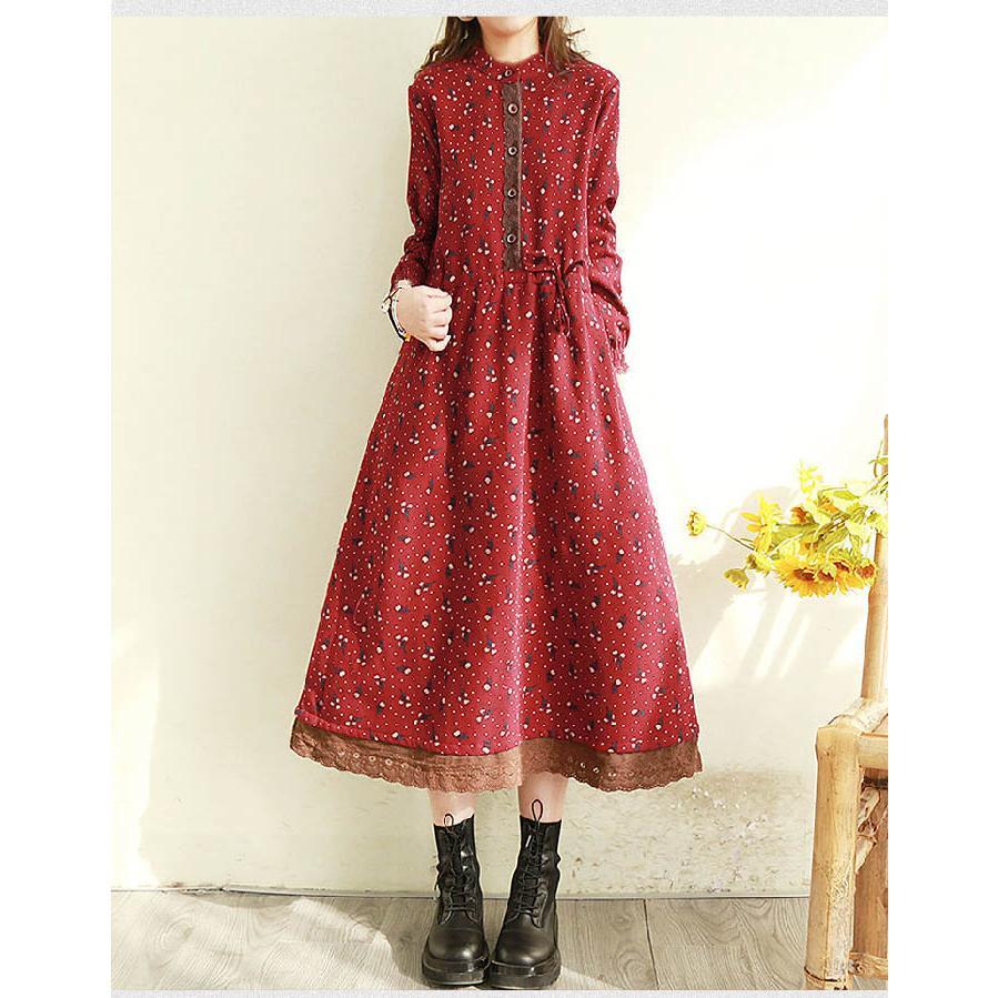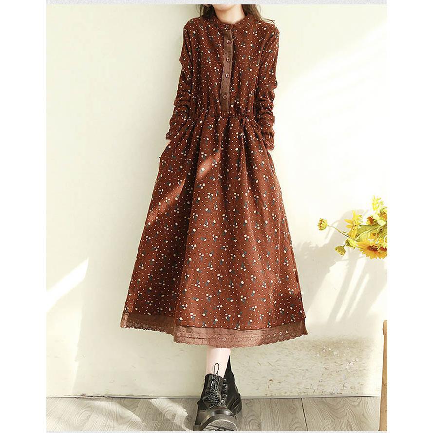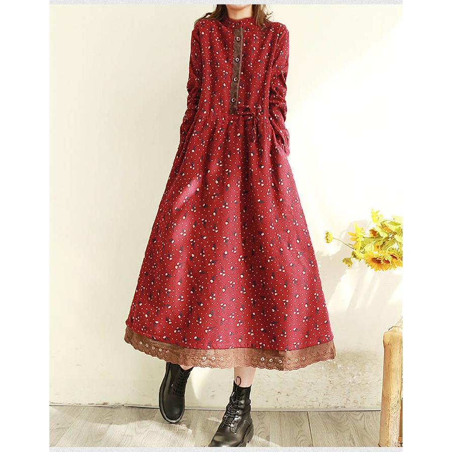 ワンピース 花柄 長袖 シャツワンピー レディースファッション 超目玉商品 レッド コーヒー 紺色 M L XL 2XL