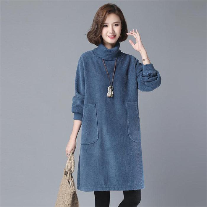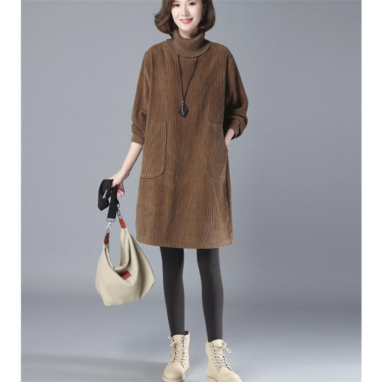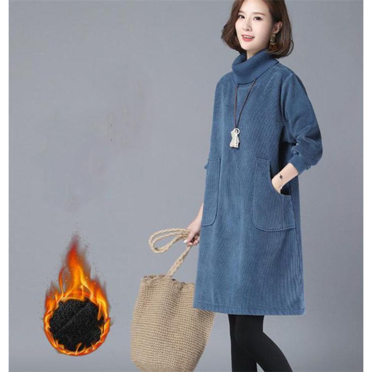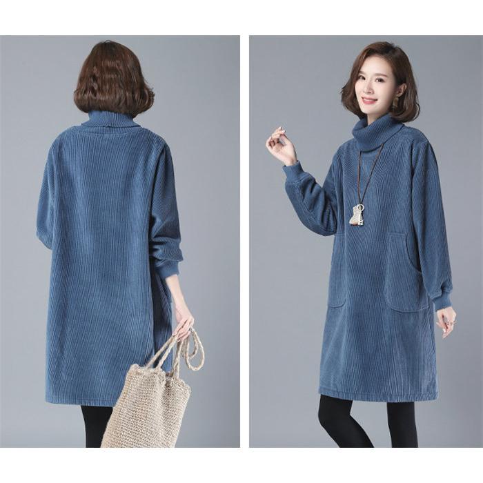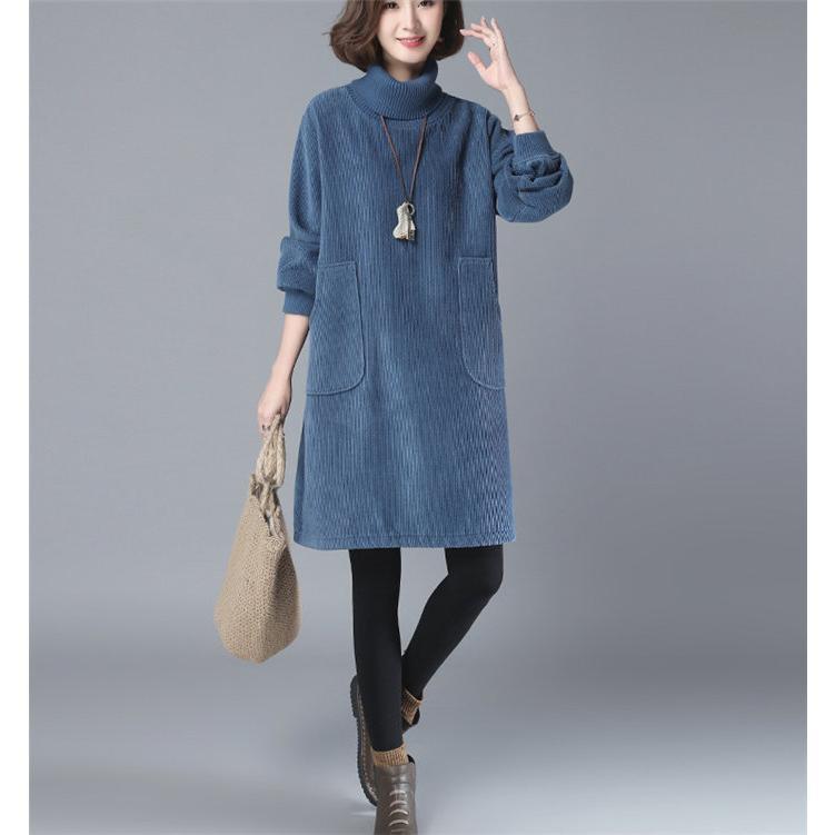 裏起毛ワンピース ハイネックワンピース レディースファッション 新登場! ブラウン ブルー M L XL 2XL