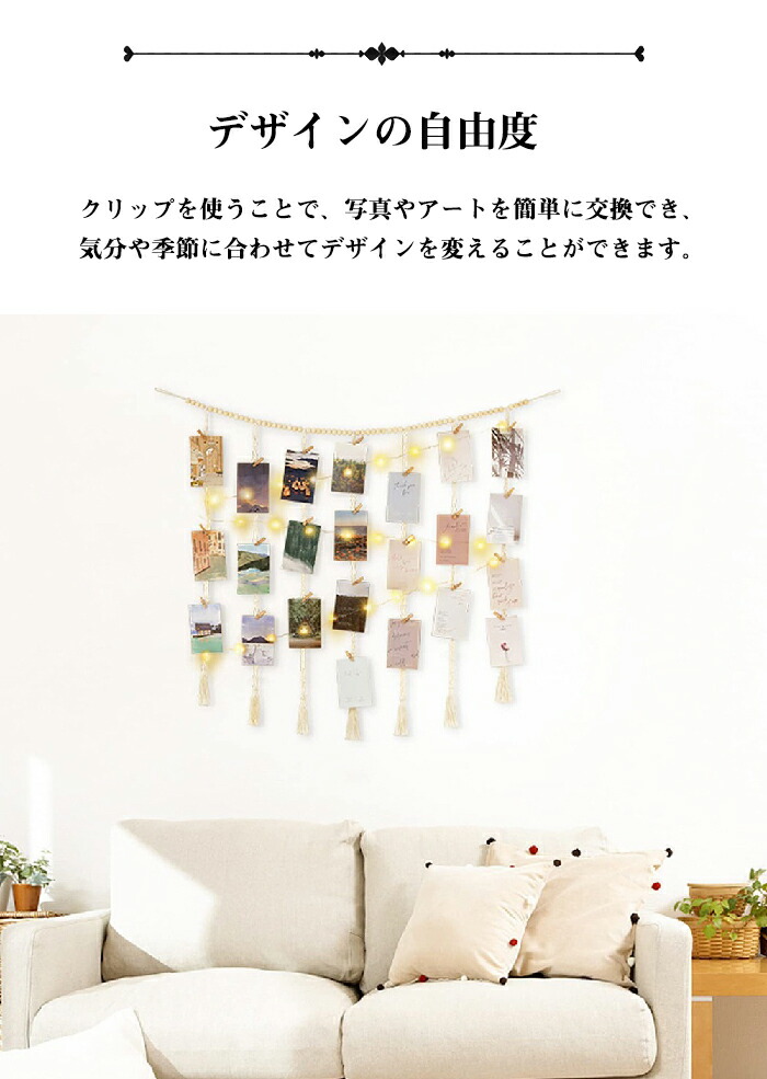 クリップを使うことで、写真やアートを簡単に交換でき、気分や季節に合わせてデザインを変えることができます。