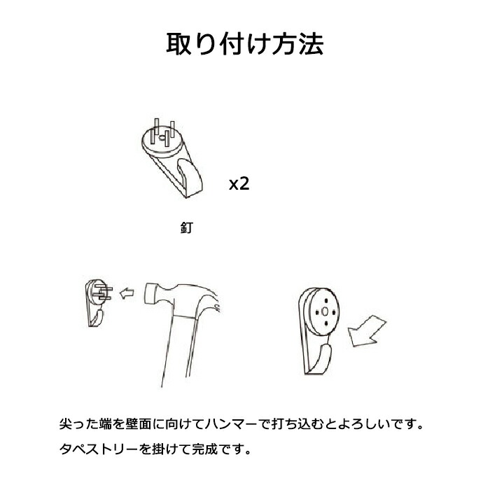 クリップを使用することで、タペストリーの取り付けが非常に簡単で、誰でも手軽に飾ることができます。