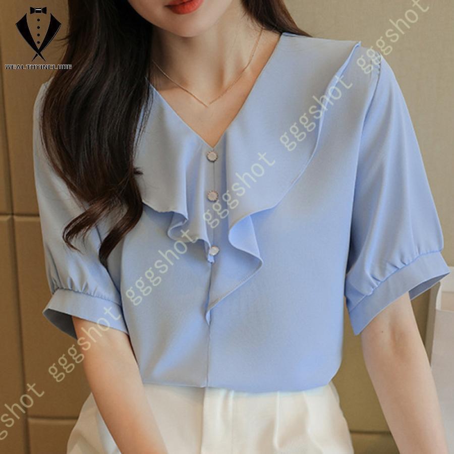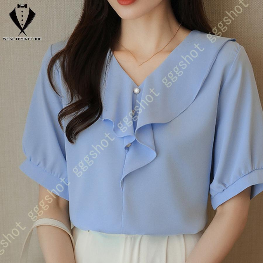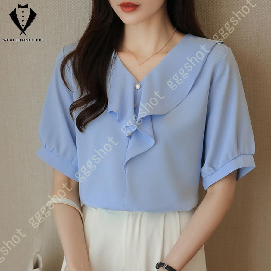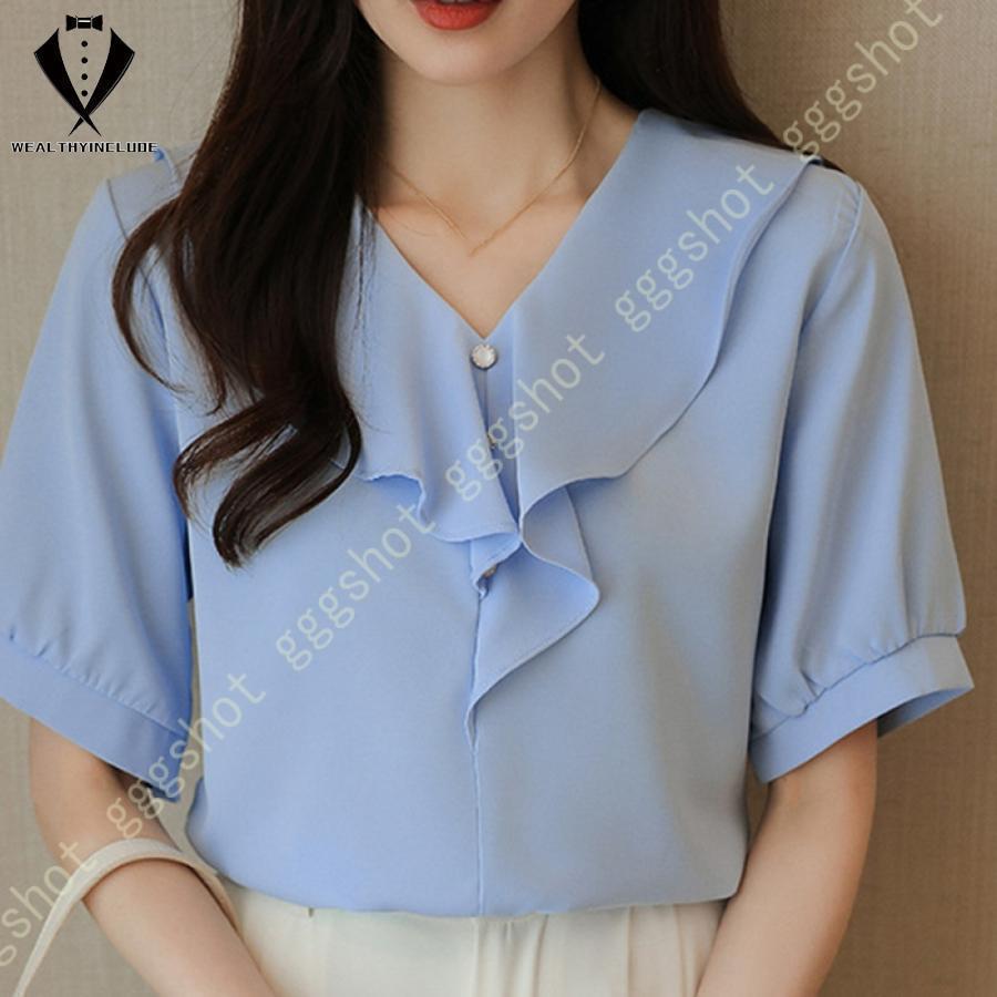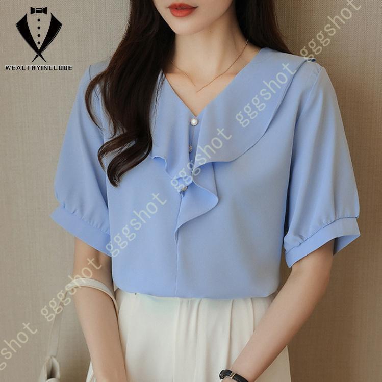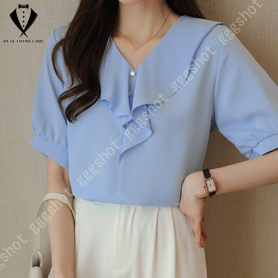 ブラウス 半袖 レディース tシャツ トップス シャツ ブラウス 超目玉商品 ホワイト ブルー S M L XL 2XL