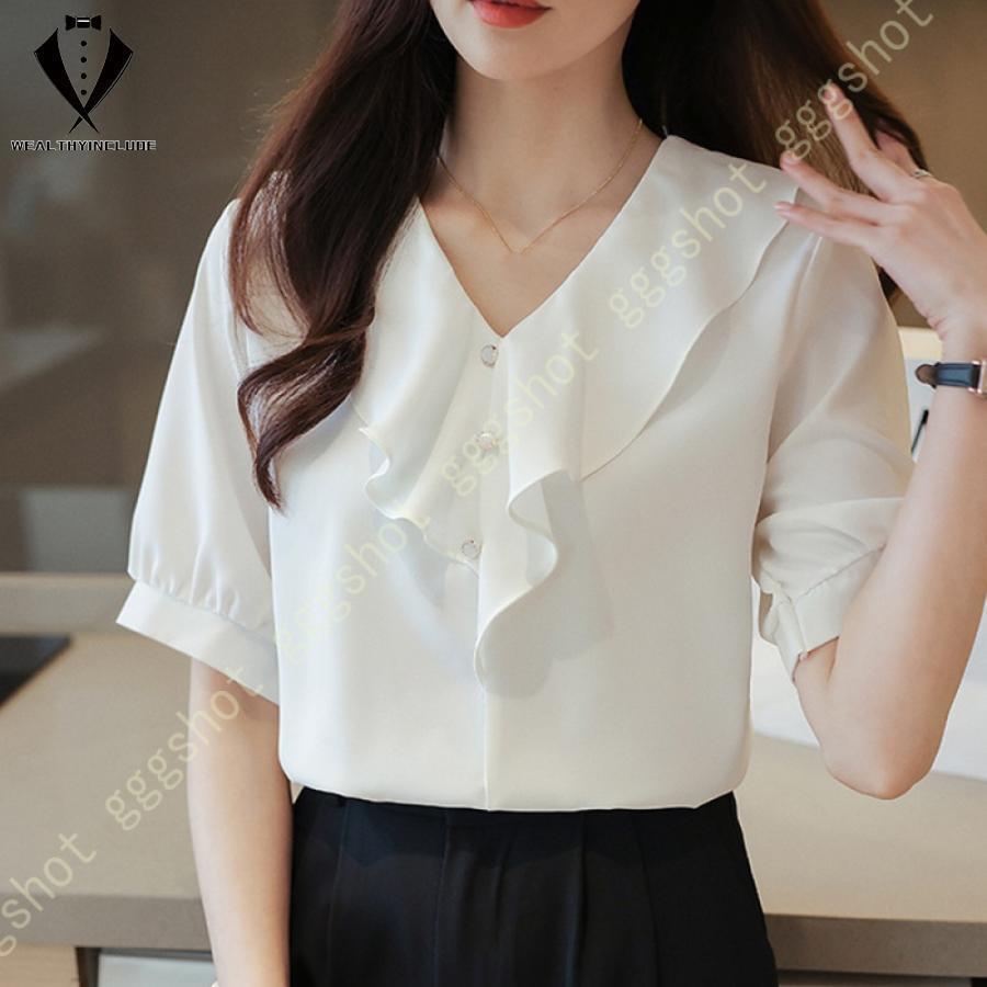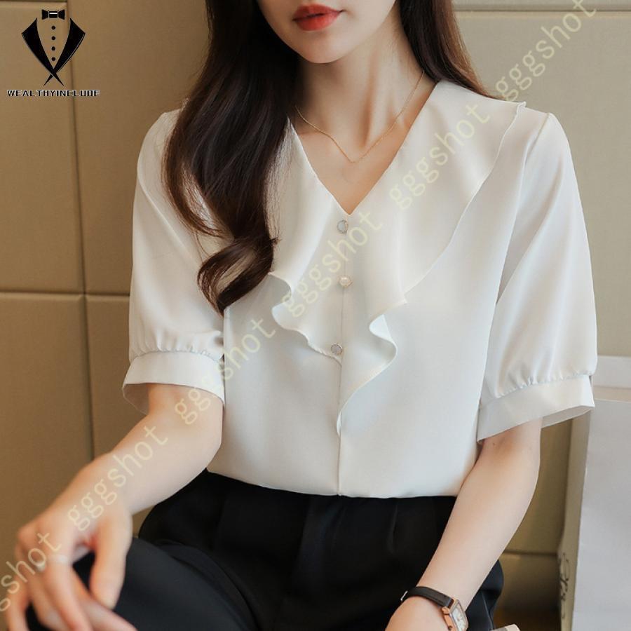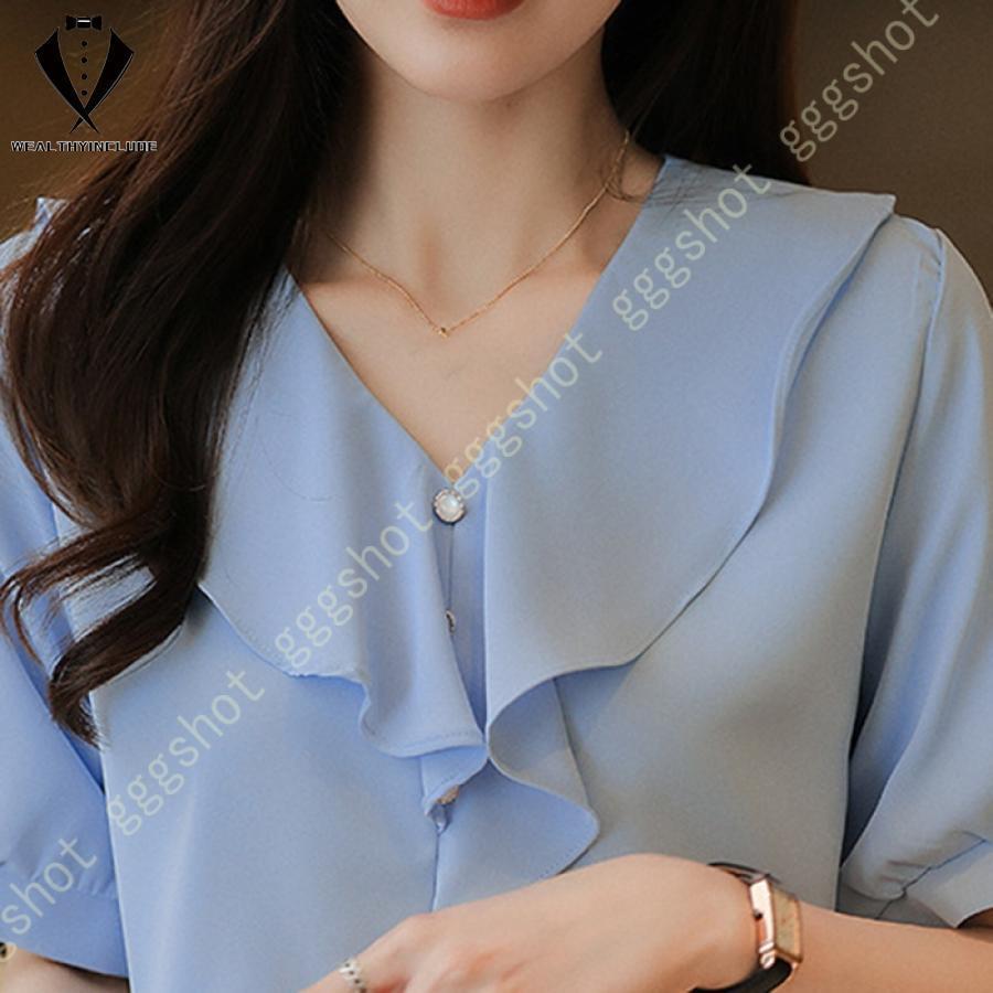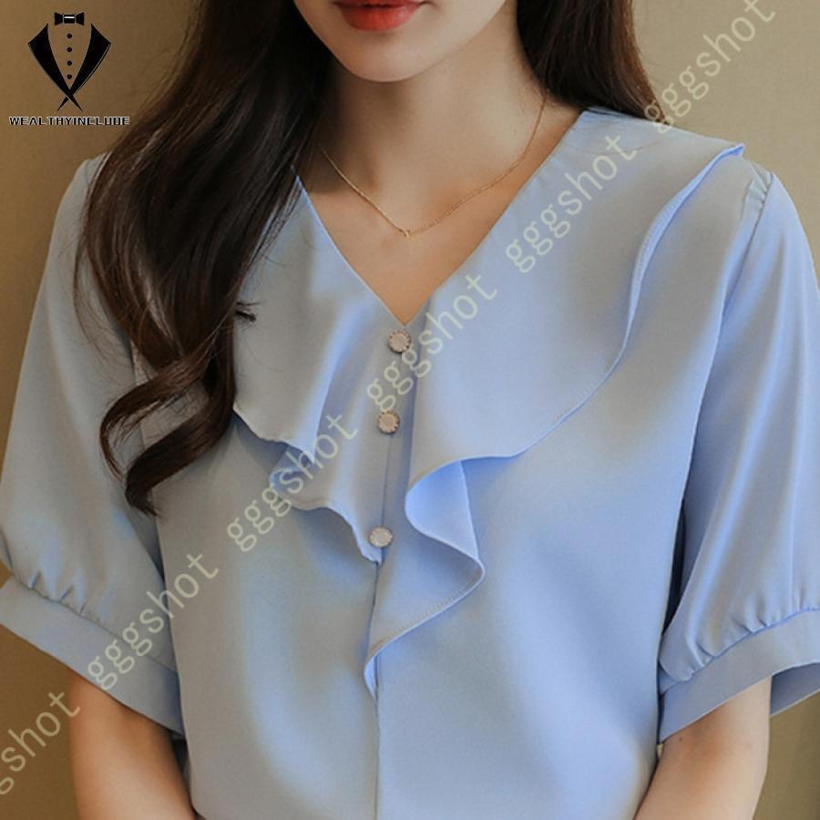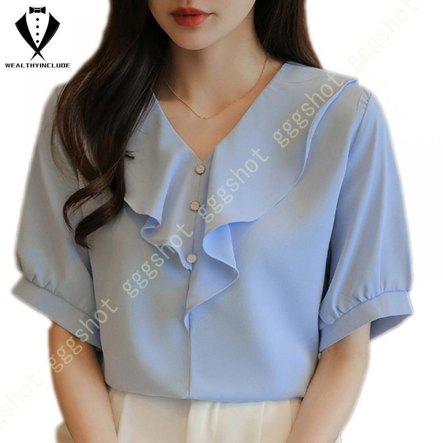 ブラウス 半袖 レディース tシャツ トップス シャツ ブラウス 超目玉商品 ホワイト ブルー S M L XL 2XL