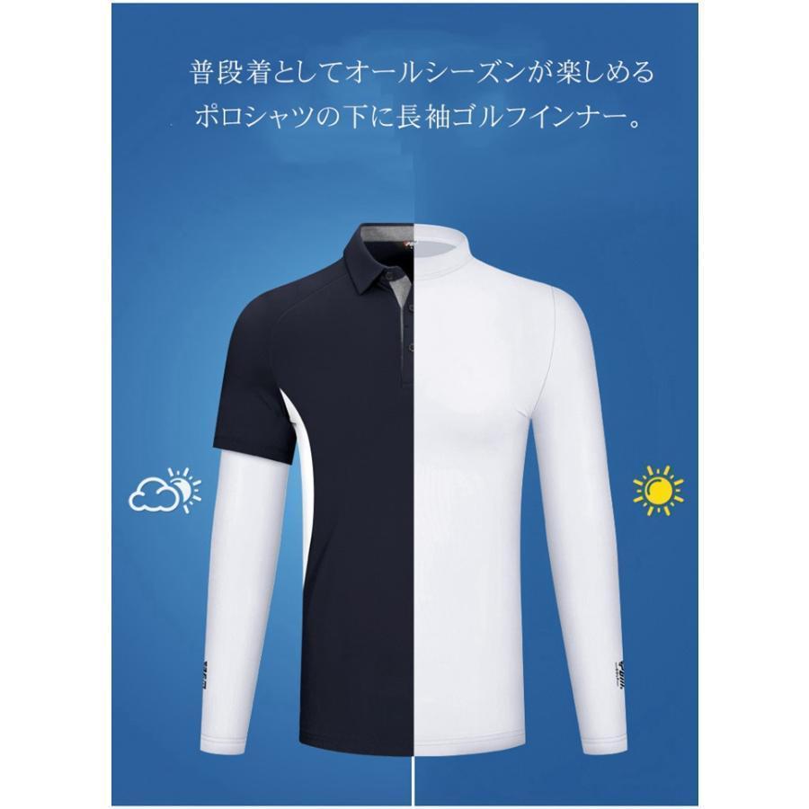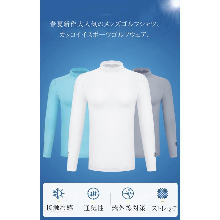 ゴルフウェア メンズ ゴルフシャツ インナーシャツ UVカット 接触冷感 クールシャツ 日焼け止め 薄手 夏 男 長袖 ストレッチ