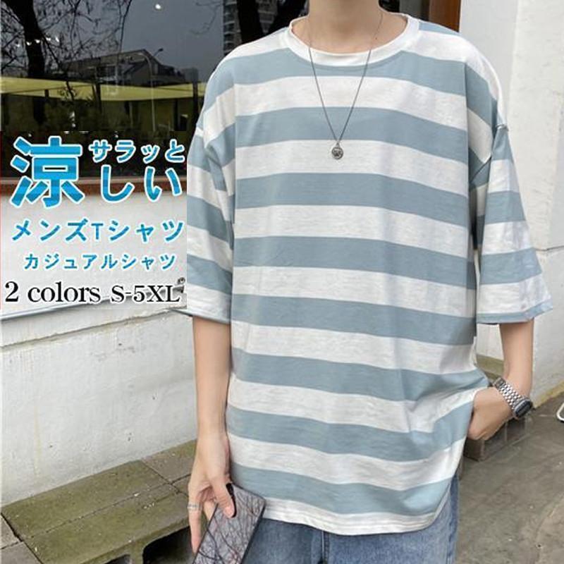 Tシャツ メンズ カジュアルシャツ トップス 夏 綿 半袖 シャツ 薄手 ボーダー柄 シンプル おしゃれ ワークシャツ スポーツ