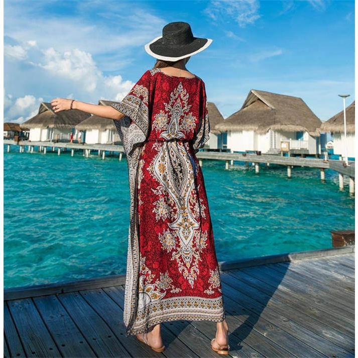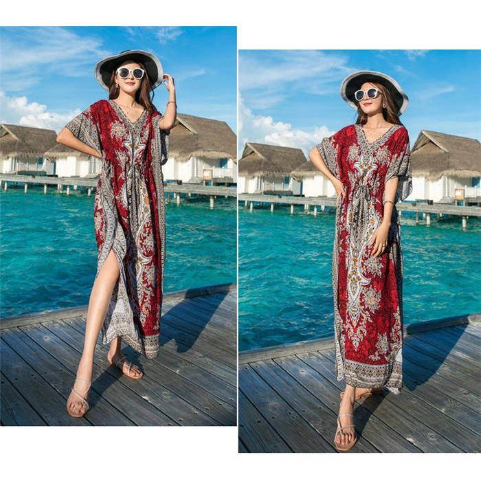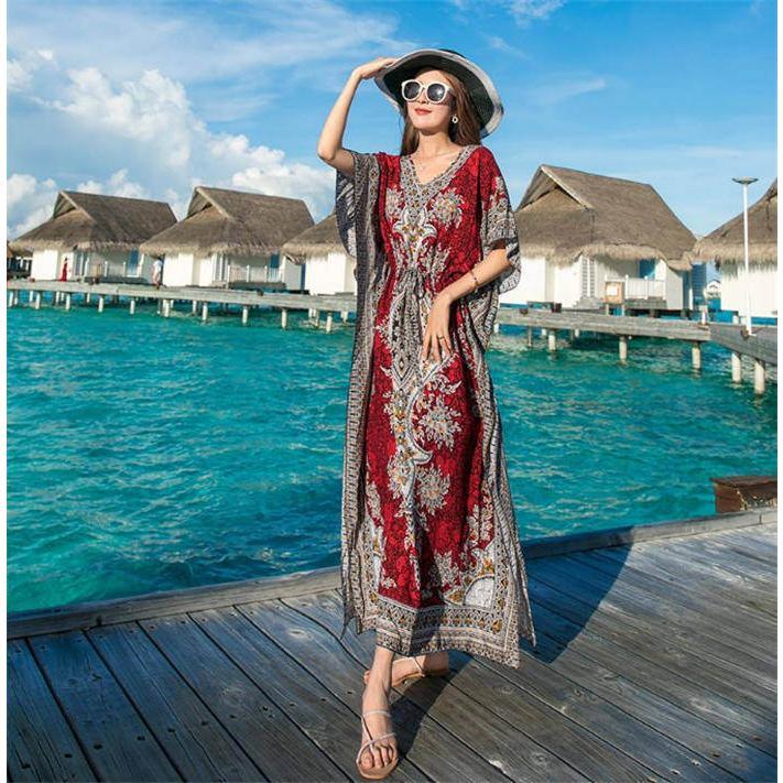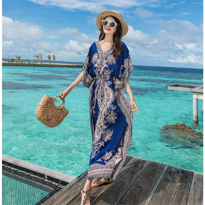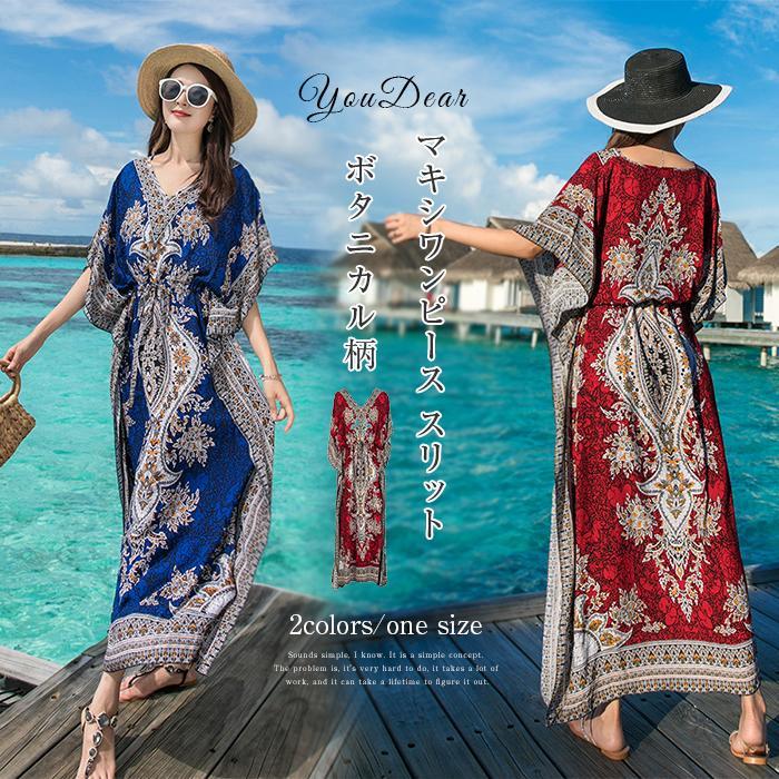 ワンピース Vネック ペイズリー柄マキ ワンピース 新登場! ネイビー ワインレッド